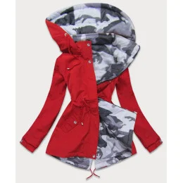 Oboustranná červená-moro dámská bunda parka s kapucí (XW665X)