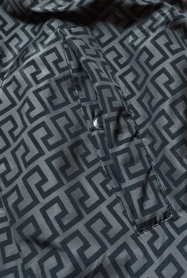 Bunda je zateplená tenkou vrstvou syntetické péřové výplně. Jedna strana bundy je hladká a druhá je lehce prošívaná. Model má kapuci se stahujícími šňůrkami. Kapuci je možné odepnout. Bunda má dvě kapsy a zapíná se zipem. V pase modelu je stahující šňůrka. Model má vzadu malý rozparek a stahující šňůrku. Patentky mají stříbrnou barvu.