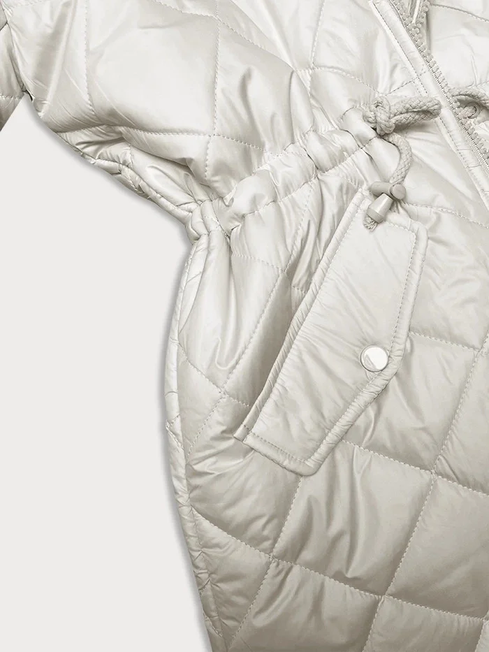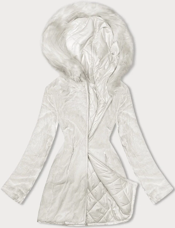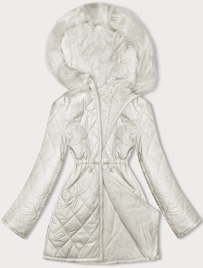 Přidání recenze k Oboustranná dámská prošívaná bunda - kožíšek v barvě ecru (H-897-11)
