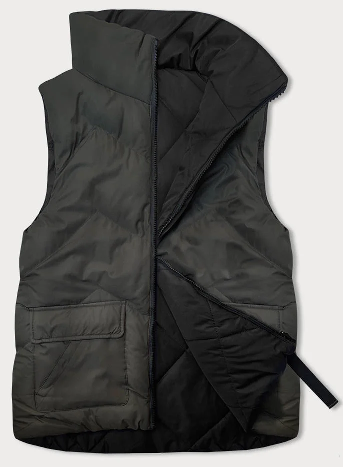 Oboustranná péřová dámská vesta v army barvě model 18823004 - J.STYLE