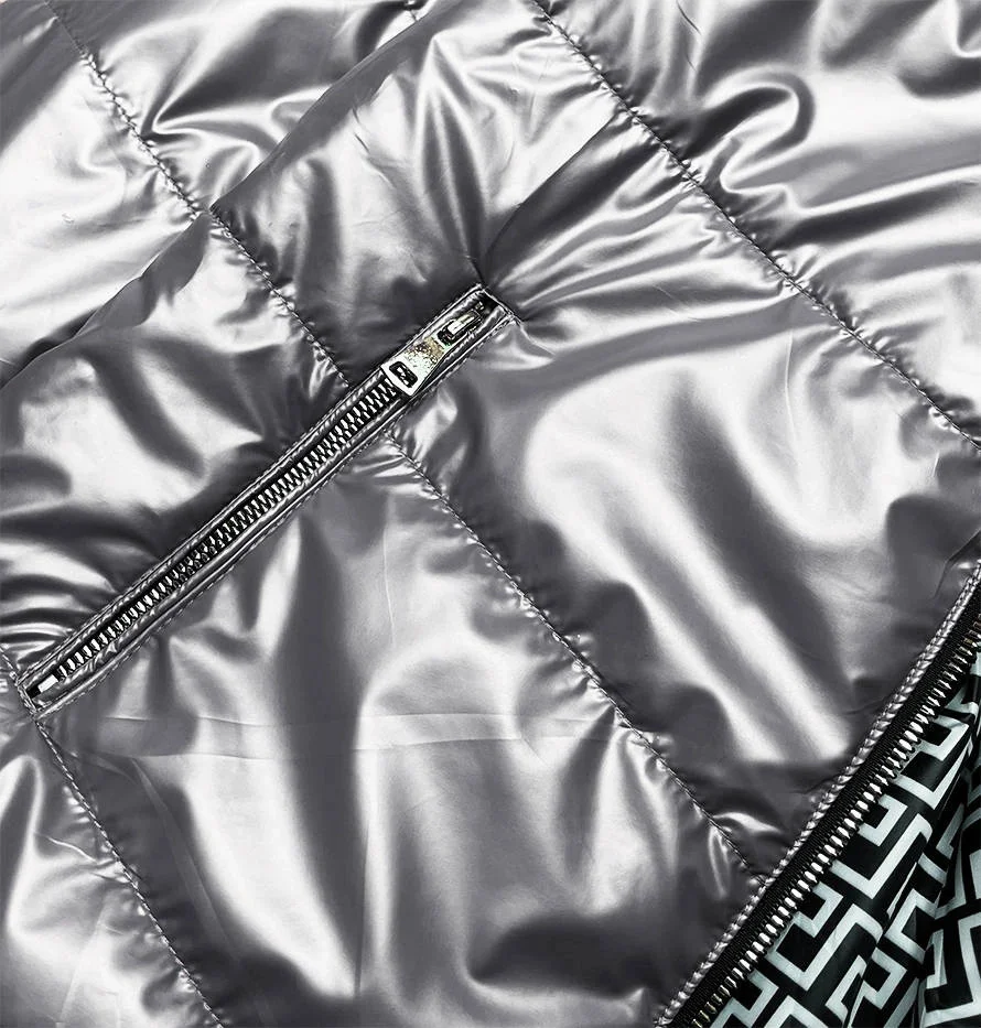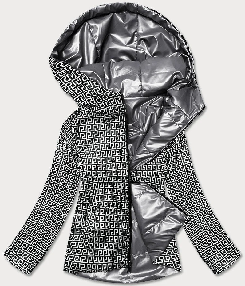 Oboustranná šedá dámská bunda s kapucí (B9793-70)