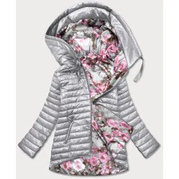 Oboustranná šedá dámská květovaná bunda (PC-7509-61)