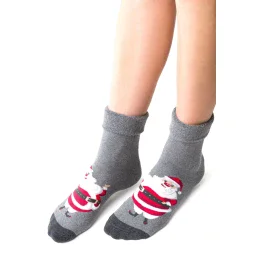 Dámské ponožky 030 040 Steven - šedá barva - z vysoce kvalitní froté bavlny - vánoční motiv - měkké a hřejivé - přehnutý horní lem
