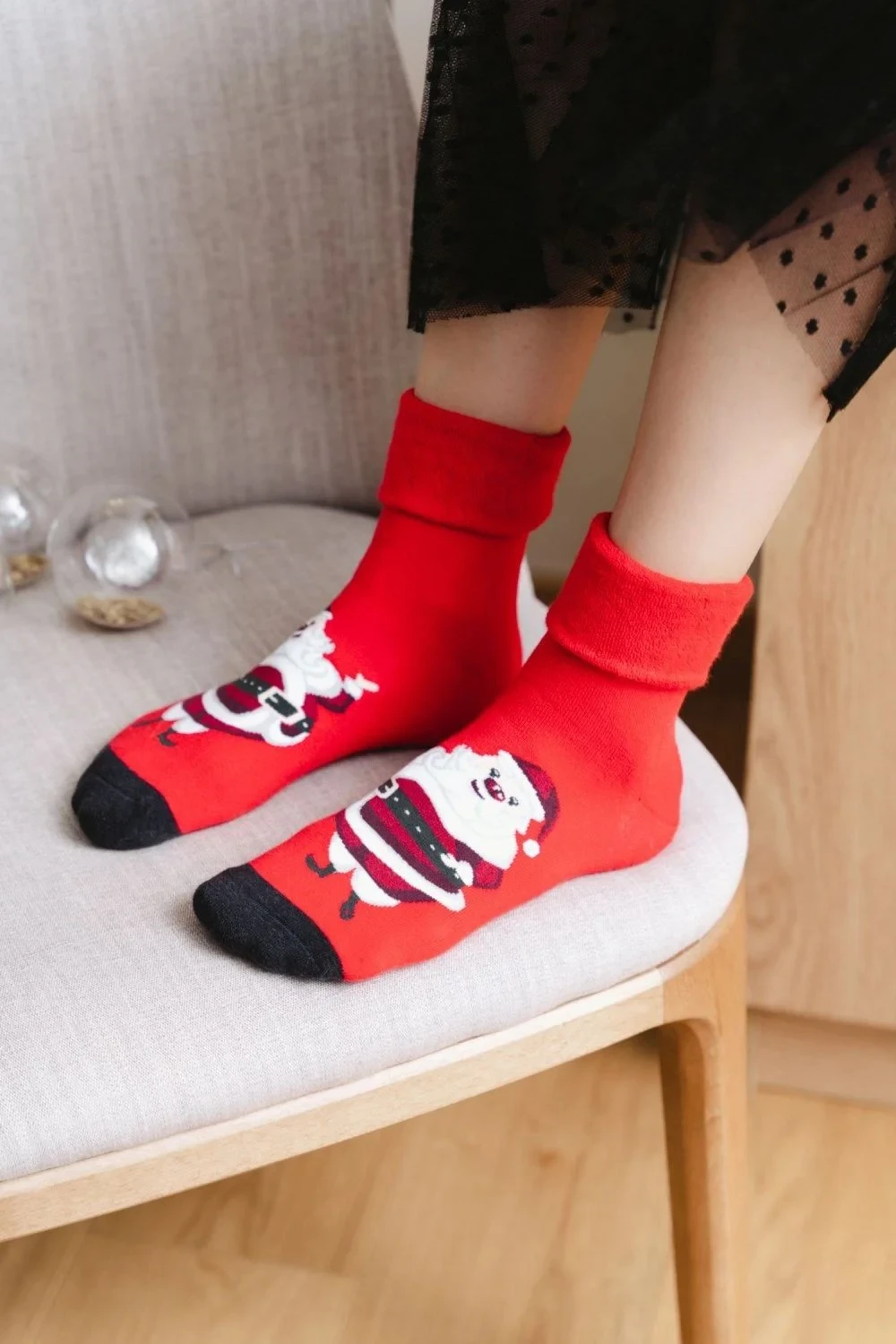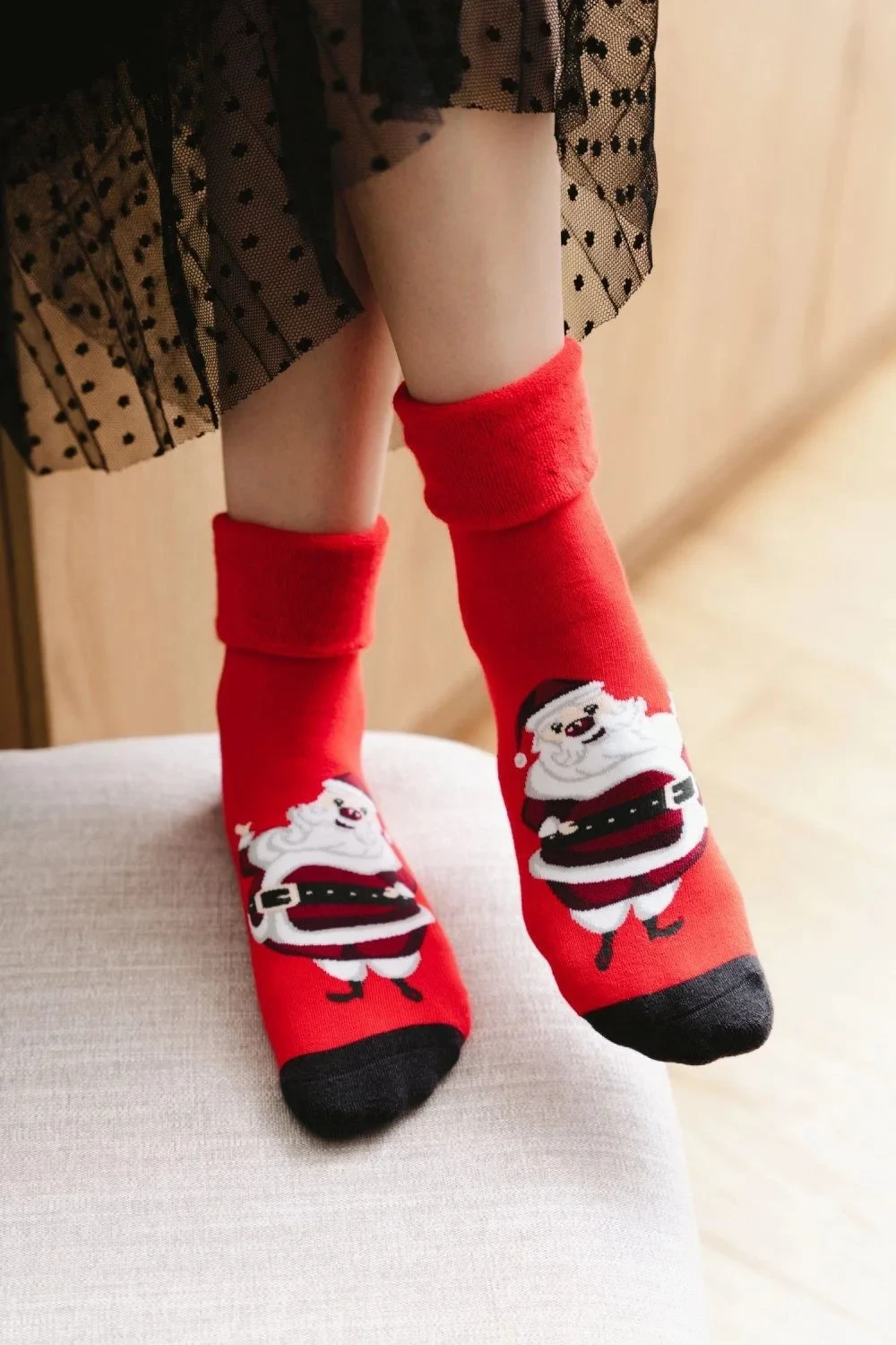 Obrázkové ponožky 030 041 Steven - červená barva - z vysoce kvalitní froté bavlny - vánoční motiv - měkké a hřejivé - přehnutý horní lem