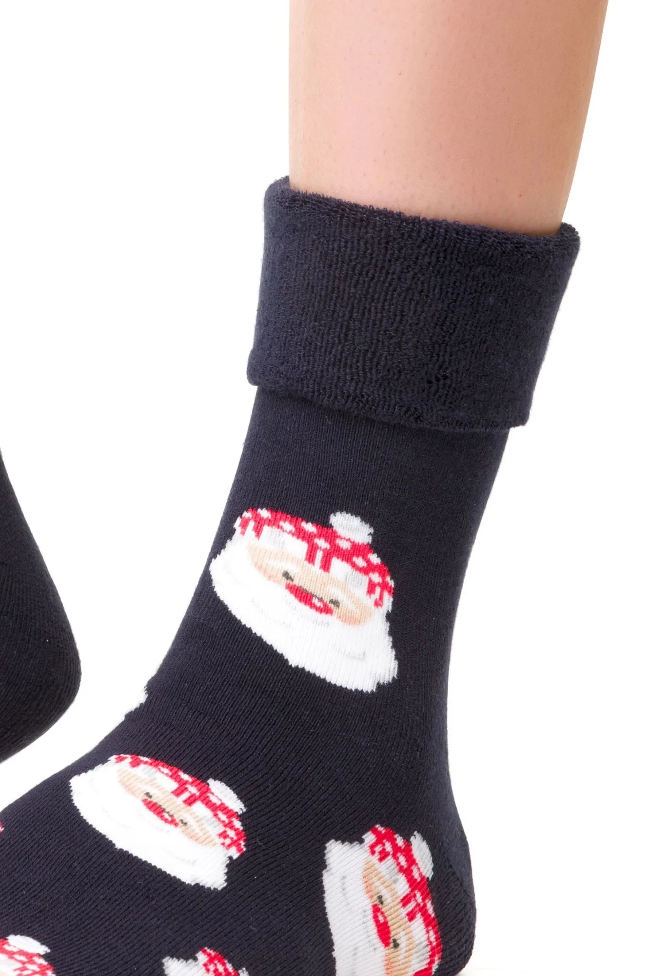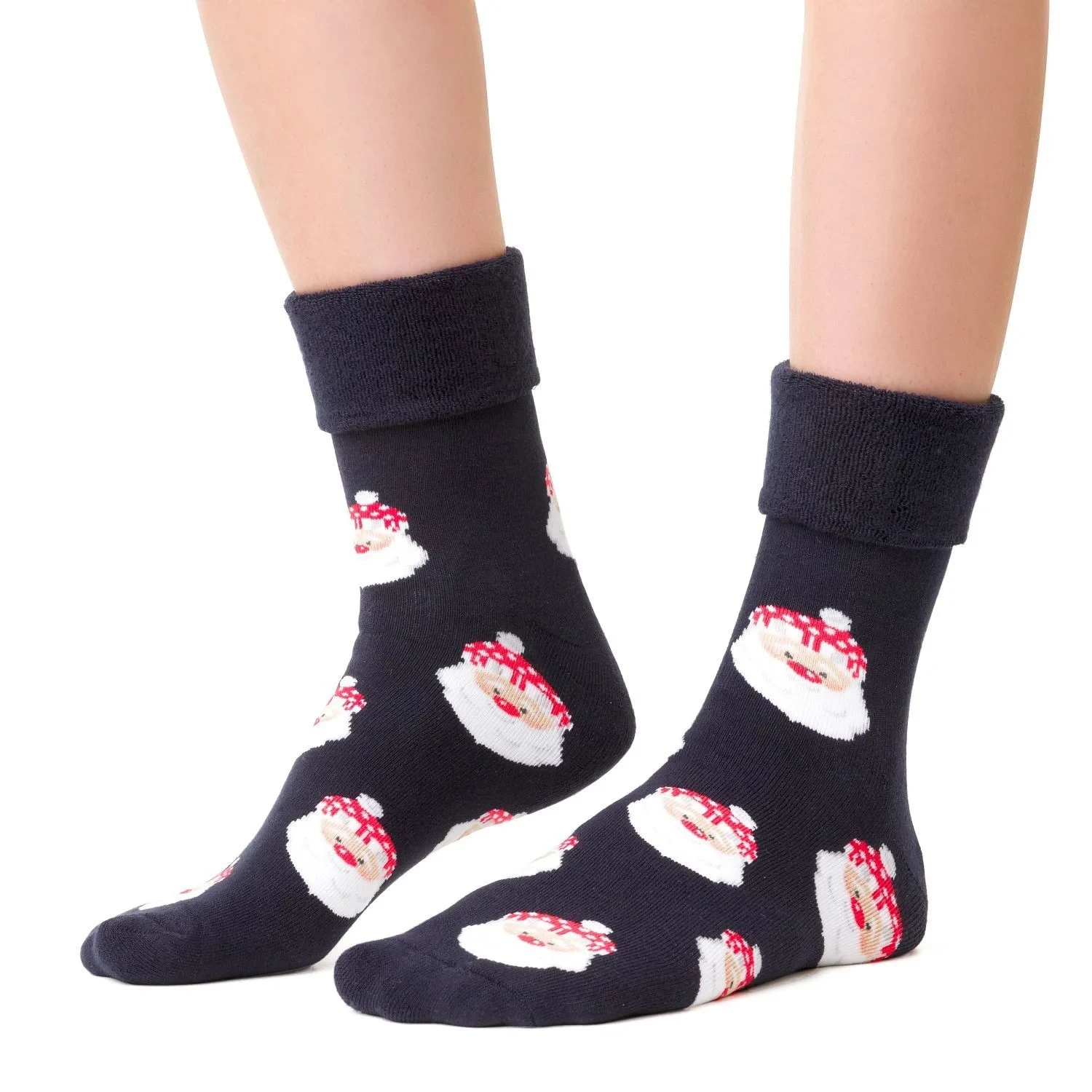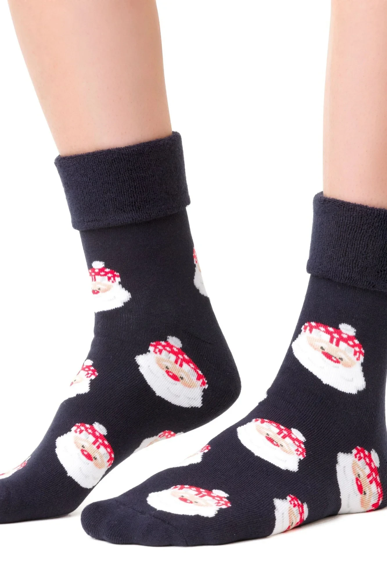 Obrázkové ponožky 030 048 Steven - tmavě modrá barva - z vysoce kvalitní froté bavlny - vánoční motiv - měkké a hřejivé - přehnutý horní lem