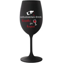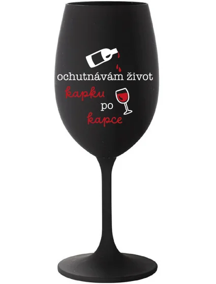OCHUTNÁVÁM ŽIVOT KAPKU PO KAPCE - černá sklenice na víno 350 ml