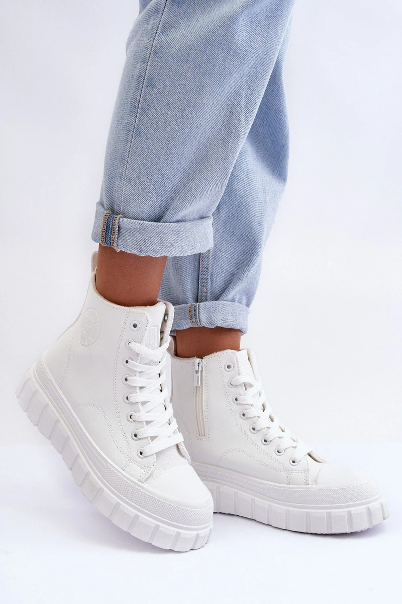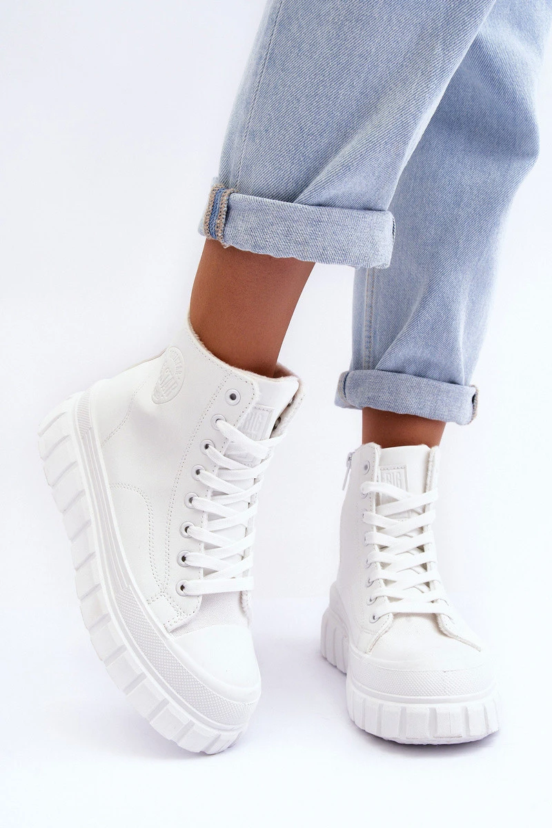 Ocieplané Kožené Tenisky Na Zip Big Star MM274624 Bílé