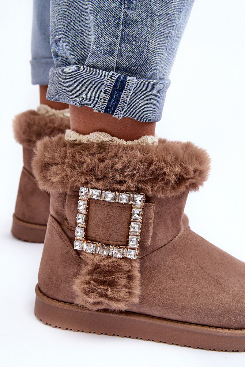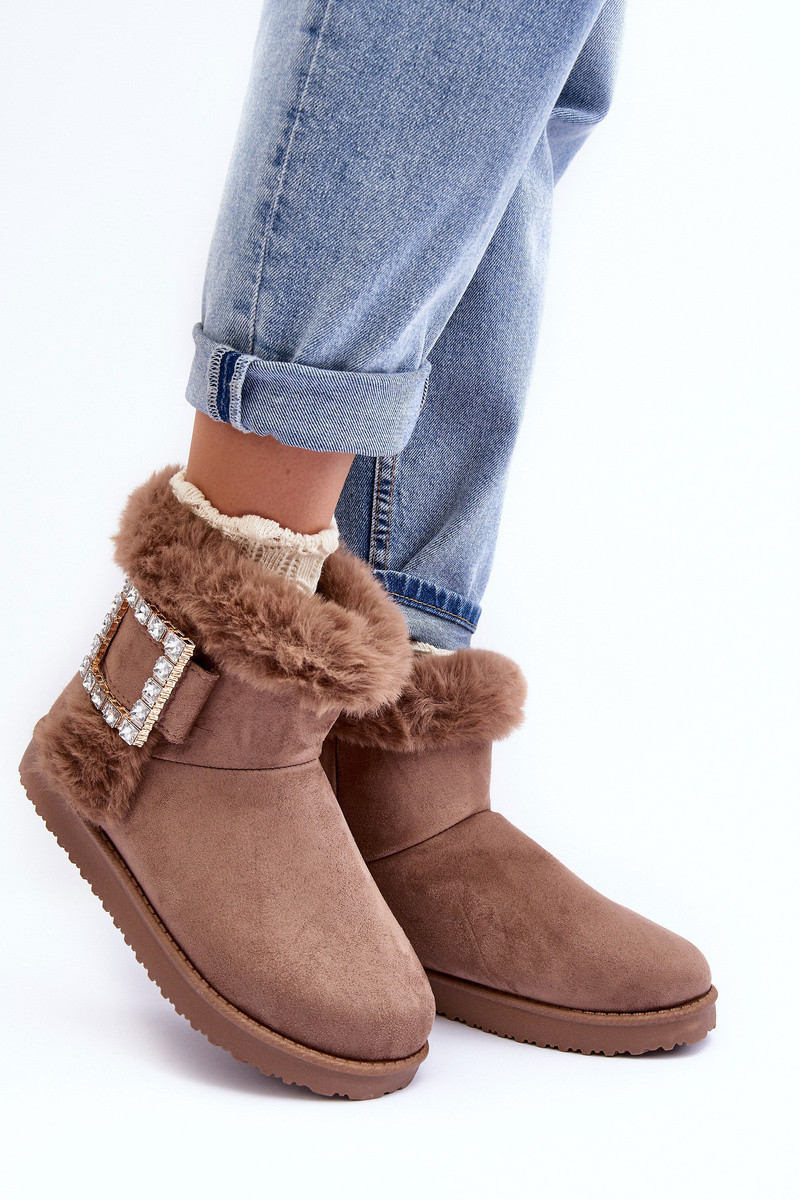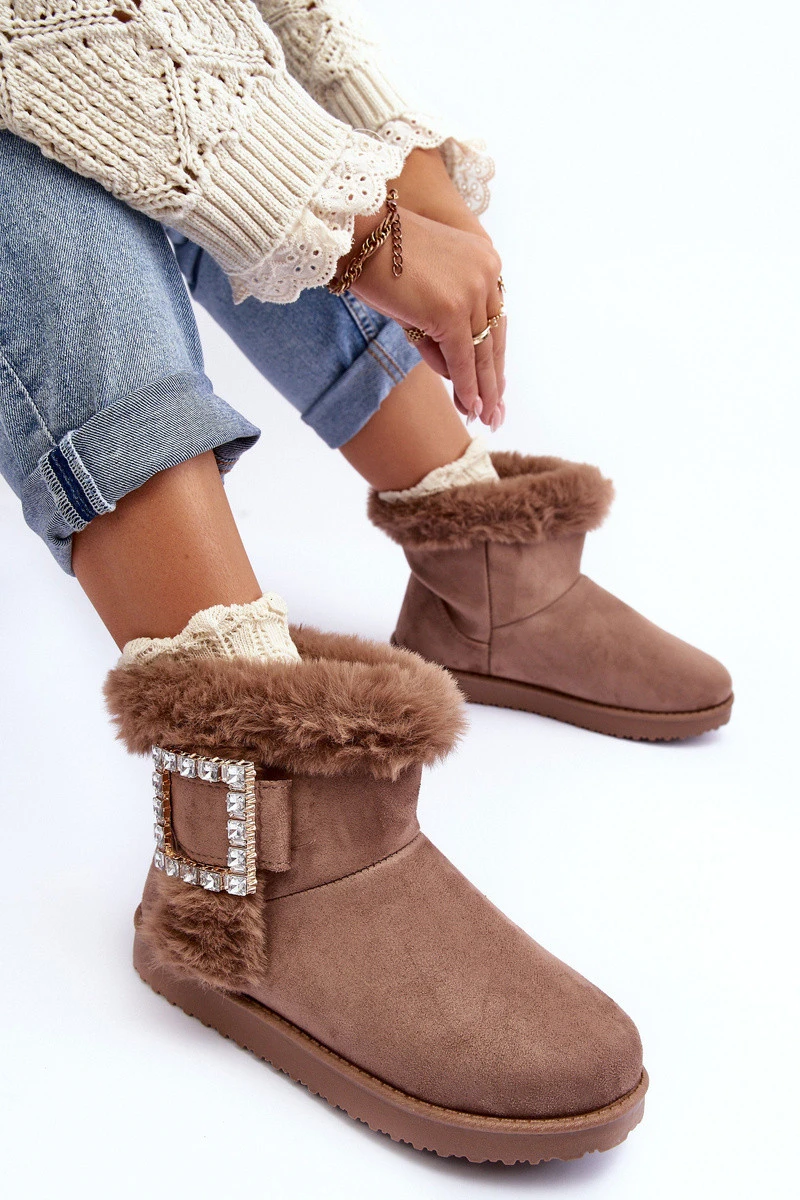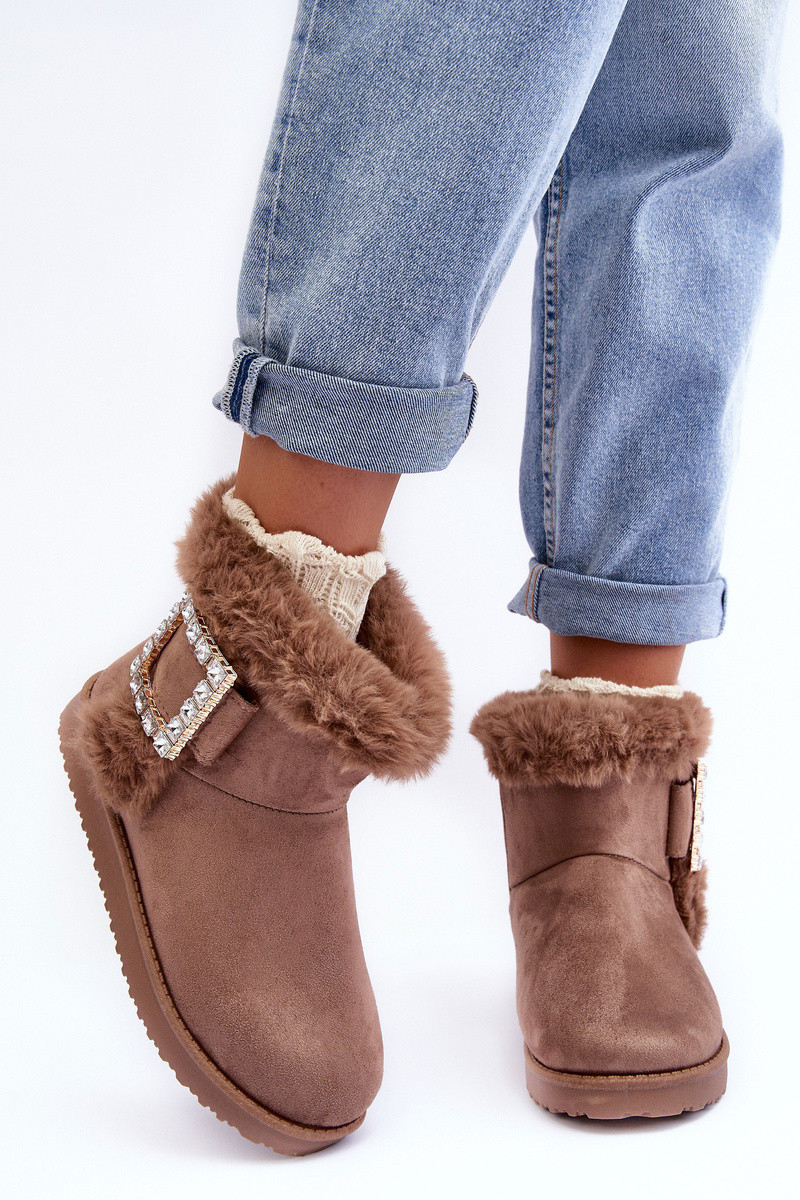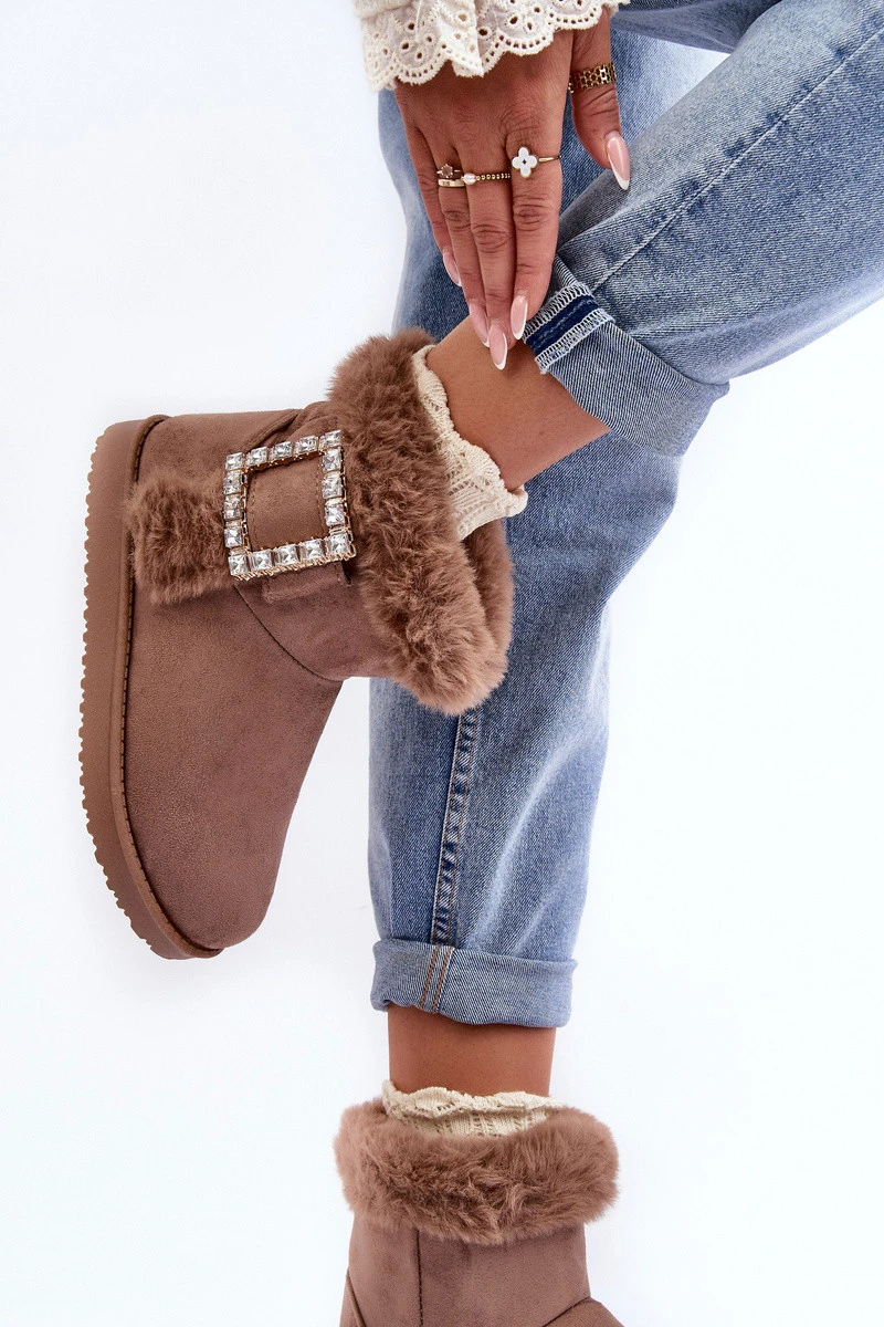Módní sněžnice jsou ideální pro podzimně-zimní sezónu. Vnitřek je zateplený hrubou kožešinou. Na špičce je ozdoba ve formě spony. Klasický vzor, který se hodí k mnoha stylům. Vyrobeno z eko semišu. Tento model je ideální pro ty, kteří si cení pohodlí a teplo v chladných dnech! Prostě je musíte mít! Při výběru velikosti se řiďte tabulkou velikostí.
