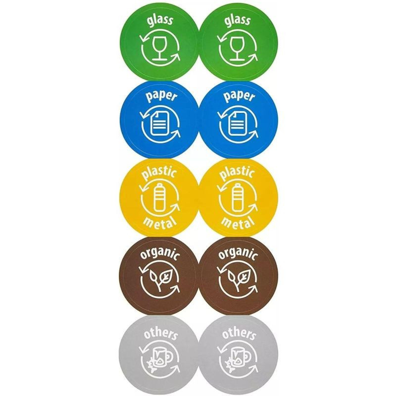 - barevné nálepky připevněné na koších pomáhají identifikovat druh sbíraného odpadu