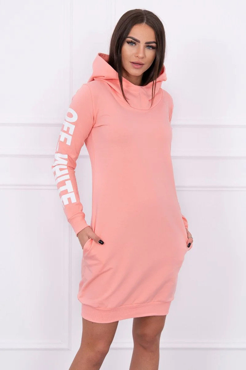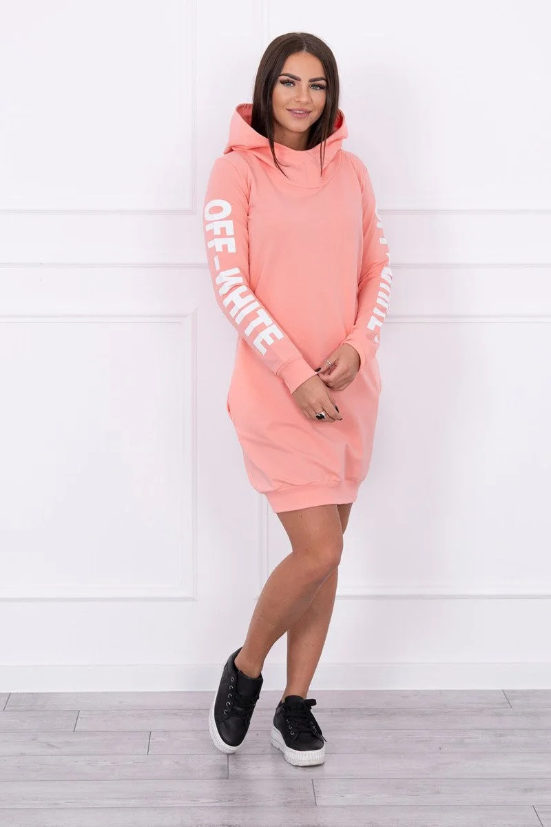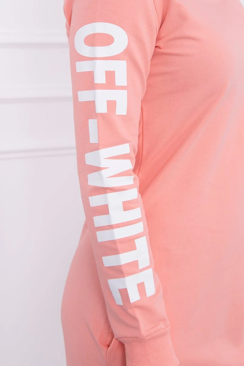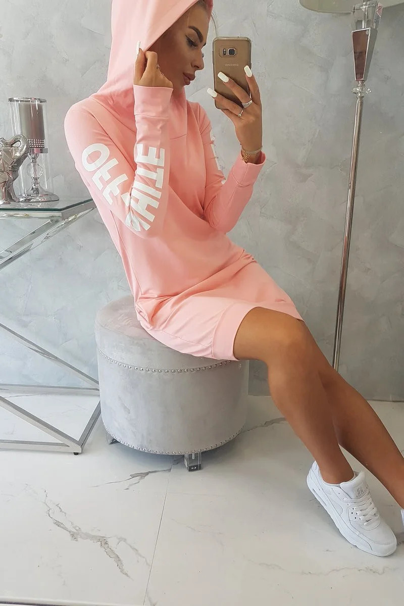 Představujeme vám módní šaty. Šaty s kapucí a nápisem na rukávu off white. Šaty mají kapsy. Šaty jsou vyrobeny z vysoce kvalitního materiálu. Velikost je univerzální a vyhovuje dámám, které nosí velikost S, M nebo L.