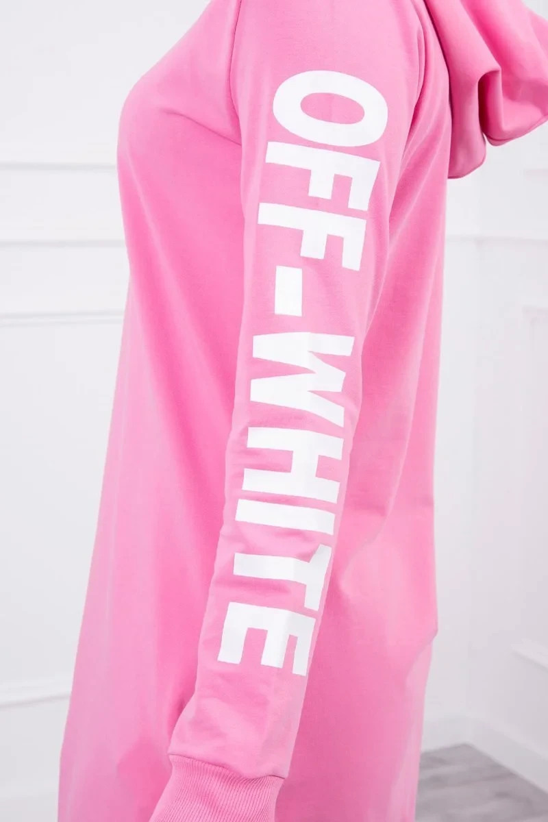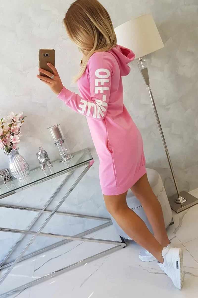 Představujeme vám módní šaty. Šaty s kapucí a nápisem na rukávu off white. Šaty mají kapsy. Šaty jsou vyrobeny z vysoce kvalitního materiálu. Velikost je univerzální a vyhovuje dámám, které nosí velikost S, M nebo L.