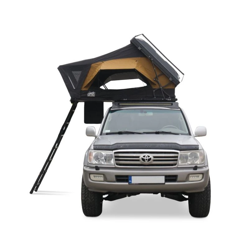 Střešní stan FOLD E 150 od společnosti OFFLANDER je kompaktní, ale zároveň mimořádně robustní řešení pro dvě osoby (maximálně tři) nebo rodinu 2+1. Jedná se o model, který kombinuje rychlé sestavení, odolnost a maximální cestovní komfort. Díky moderním zatemňovacím tkaninám a extrémně vysoké voděodolnosti až do PU 5000 mm si stan FOLD E 150 poradí i s těmi nejnáročnějšími povětrnostními podmínkami.