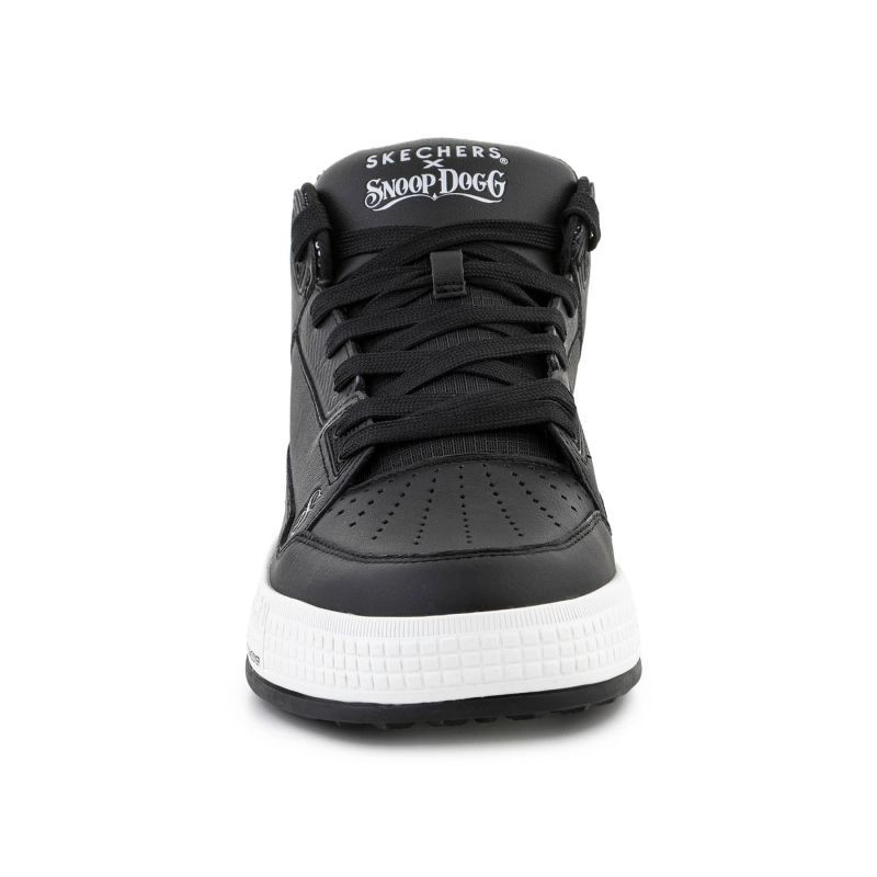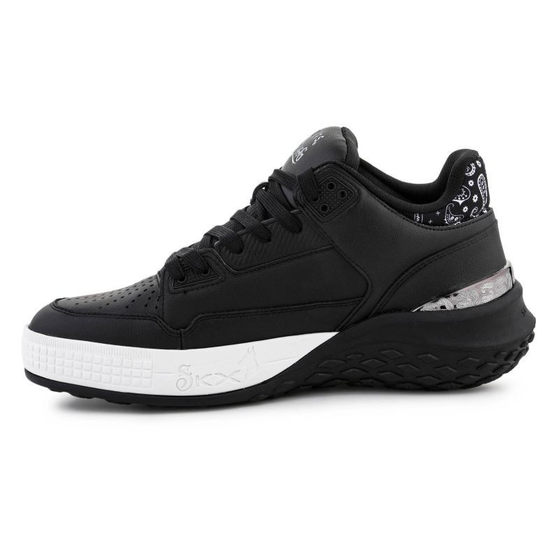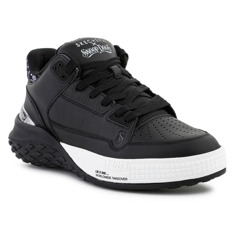 Model Skechers Sizzle Buckets OG 251180-BLK wyróżnia się skórzaną/cholewką premium z perforacjami oraz detalem kołnierza w stylu paisley. Górna część buta wykonana z mieszanki skóry, materiałów syntetycznych i tekstylnych, co zapewnia trwałość oraz komfort użytkowania.