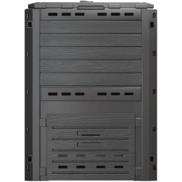 Zamknięta forma i zabezpieczenie w formie przykrywek ograniczy dostęp wszelkich zwierząt do zebranych odpadów, a otwory zapewnią dopływ niezbędnego powietrza. Dolna uchylana zasuwa, ułatwi dostęp do wyprodukowanego kompostu w każdym momencie, nawet gdy jest na dnie zbiornika, a specjalna rączka blokująca klapę, umożliwi wygodne wrzucenie odpadów do środka! Jest lekki i wytrzymały na zmienne warunki atmosferyczne, będzie Ci służył przez wiele lat.