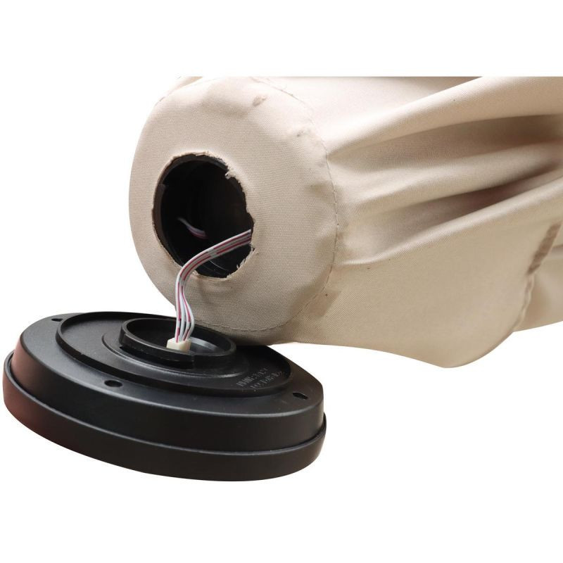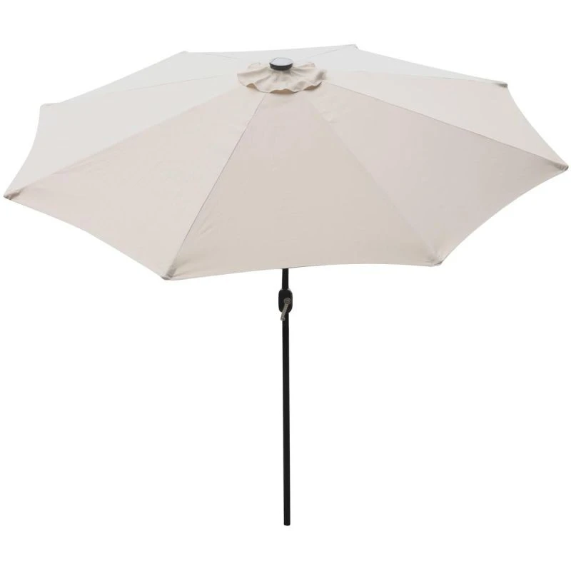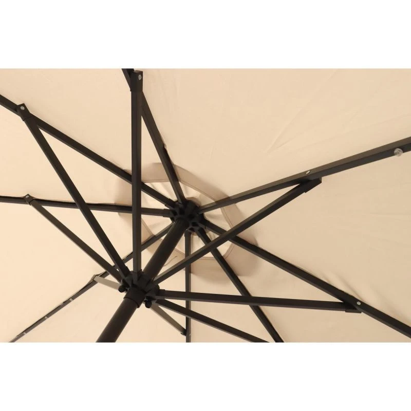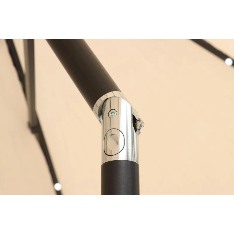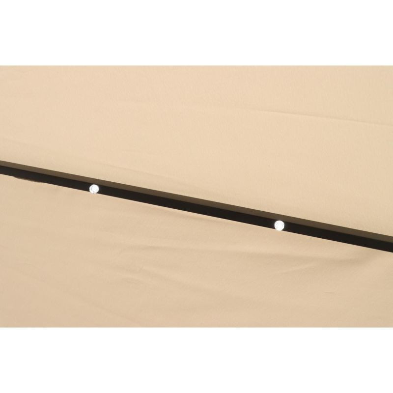 Wbudowane oświetlenie LED sprawia, że parasol może być używany również wieczorem. Daje to możliwość korzystania z ogrodu po zmroku, tworząc przyjemną, romantyczną atmosferę. Diody LED zasilane są panelem słonecznym umieszczonym na górze parasola, należy jednak pamiętać, że lampki będą prawidłowo działać tylko po naładowaniu akumulatorka w słoneczny dzień.