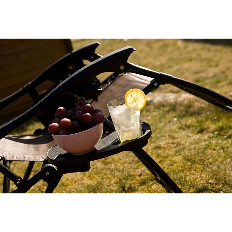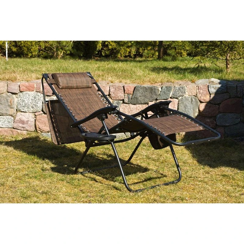 Miękki zagłówek pozwoli Ci wygodnie oprzeć na nim głowę i przyjąć wygodną pozycję podczas leżenia. Regulowany daszek, zagwarantuje przyjemny cień lub dostęp do pełnego słońca, kieszeń boczna stały dostęp do gazety lub ulubionej książki, a stoliczek pozwoli postawić kubek z kawą, sok lub telefon. Stelaż fotela wykonany jest z solidnych i wytrzymałych stalowych rurek, utrzyma obciążenie aż do 120 kg!