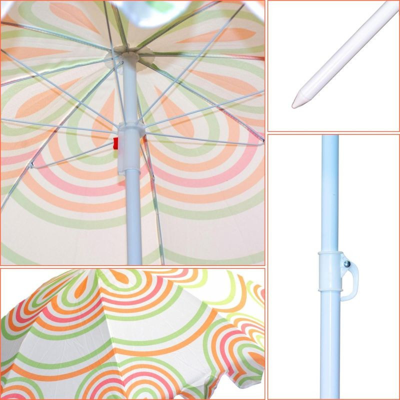 Ten wielokolorowy parasol 140 cm z czaszą 160 cm i filtrem UV UPF 30+ to Twoja osobista strefa chilloutu.