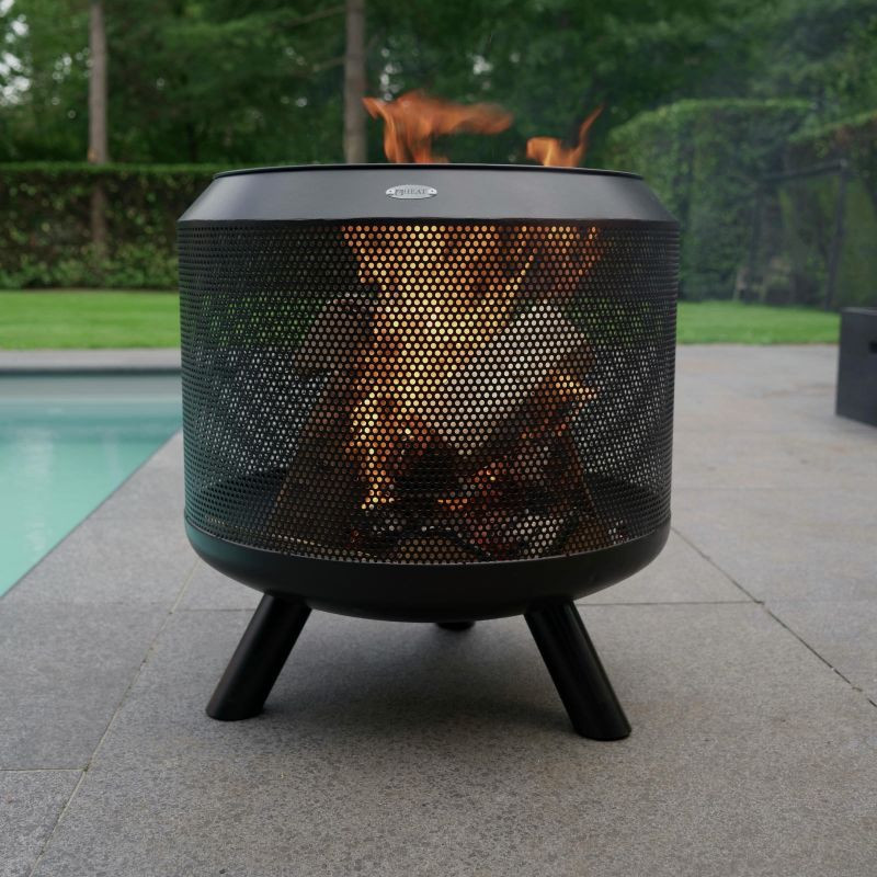 Zahradní ohniště Fire Drum od společnosti HEAT Outdoor Living je moderní válcové ohniště inspirované tvarem klasického zahradního koše. Je vyrobeno z práškově lakované oceli a stojí na třech robustních kovových nohách a kombinuje atraktivní design s funkčností. Výrazná perforovaná struktura mísy omezuje šíření jisker a zajišťuje bezpečnost, zároveň však umožňuje, aby byl oheň vidět ze všech stran.