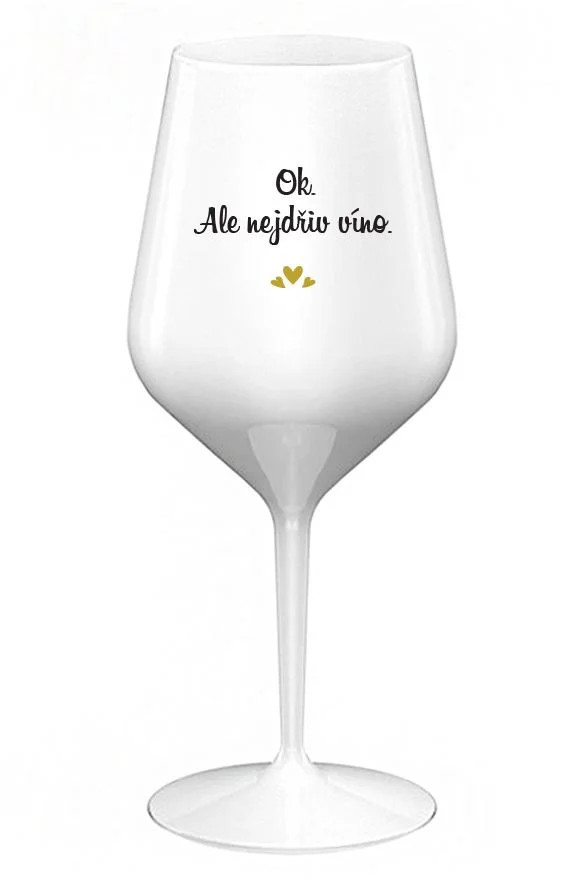 OK, ALE NEJDŘÍV VÍNO. - bílá nerozbitná sklenice na víno 470 ml