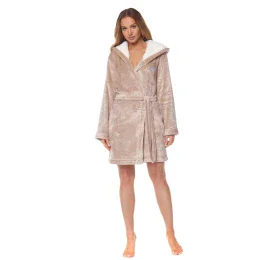 Hřejivý župan v béžové barvě a'la ("angora") s nápisem "Hello" na hrudi. Nadýchaný a příjemný na dotek, s kapucí lemovanou světlou kožešinou. Měkký a okouzlující, jistě vám bude dlouho sloužit. Složení: 100% polyester.