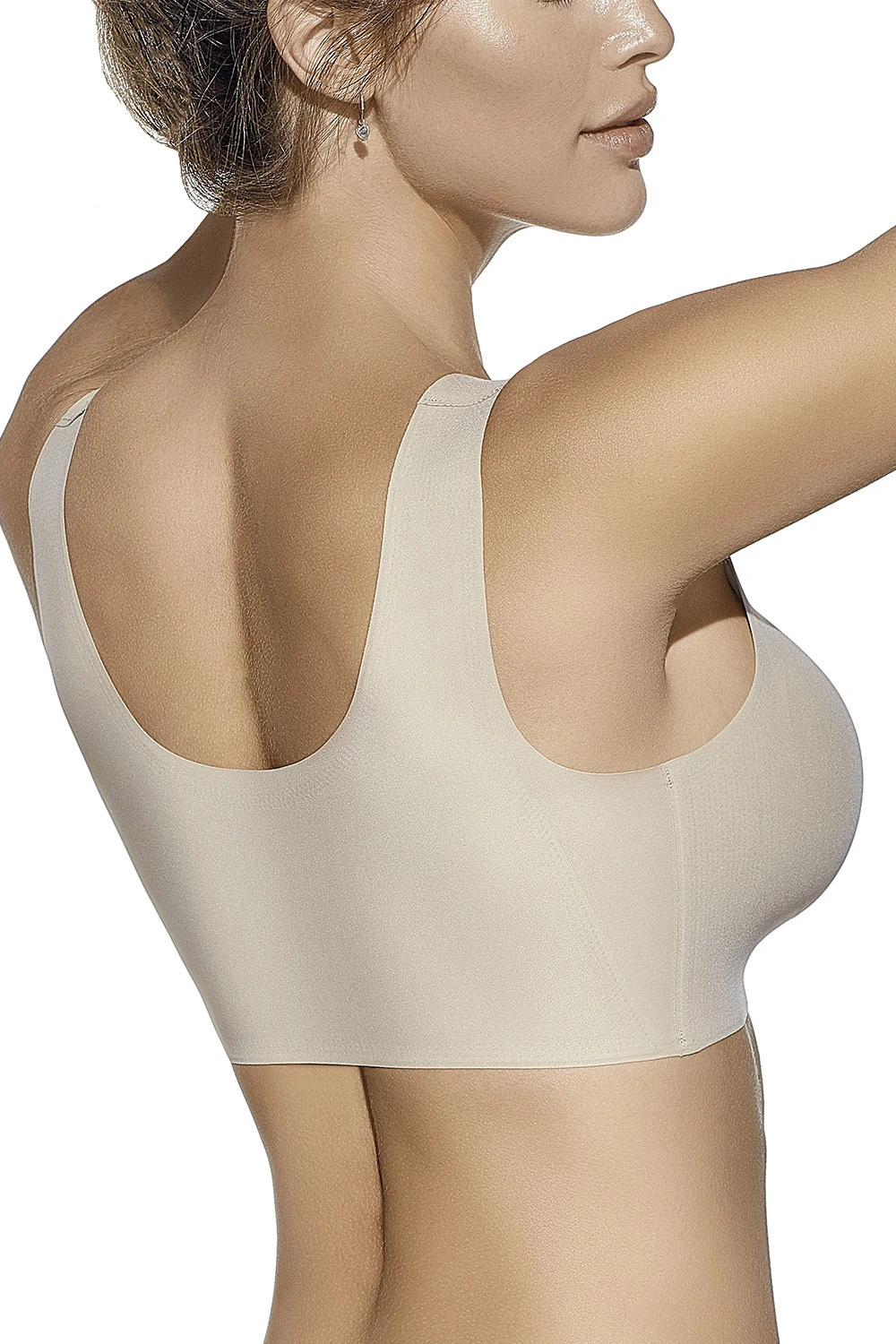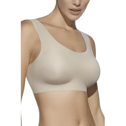Braletka Selene Olivia wykonana z elastycznej, bezszwowej dzianiny zapewnia gładkie wykończenie pod ubraniem. Miseczki z kieszonkami na wkładki umożliwiają dopasowanie modelowania. Szerokie ramiączka bez regulacji oraz szeroki pas pod biustem dbają o komfort i lekkie podtrzymanie. Gładki tył bez zapięcia eliminuje punkty ucisku i odznaczanie. Skład: 51% poliamid, 49% elastan.