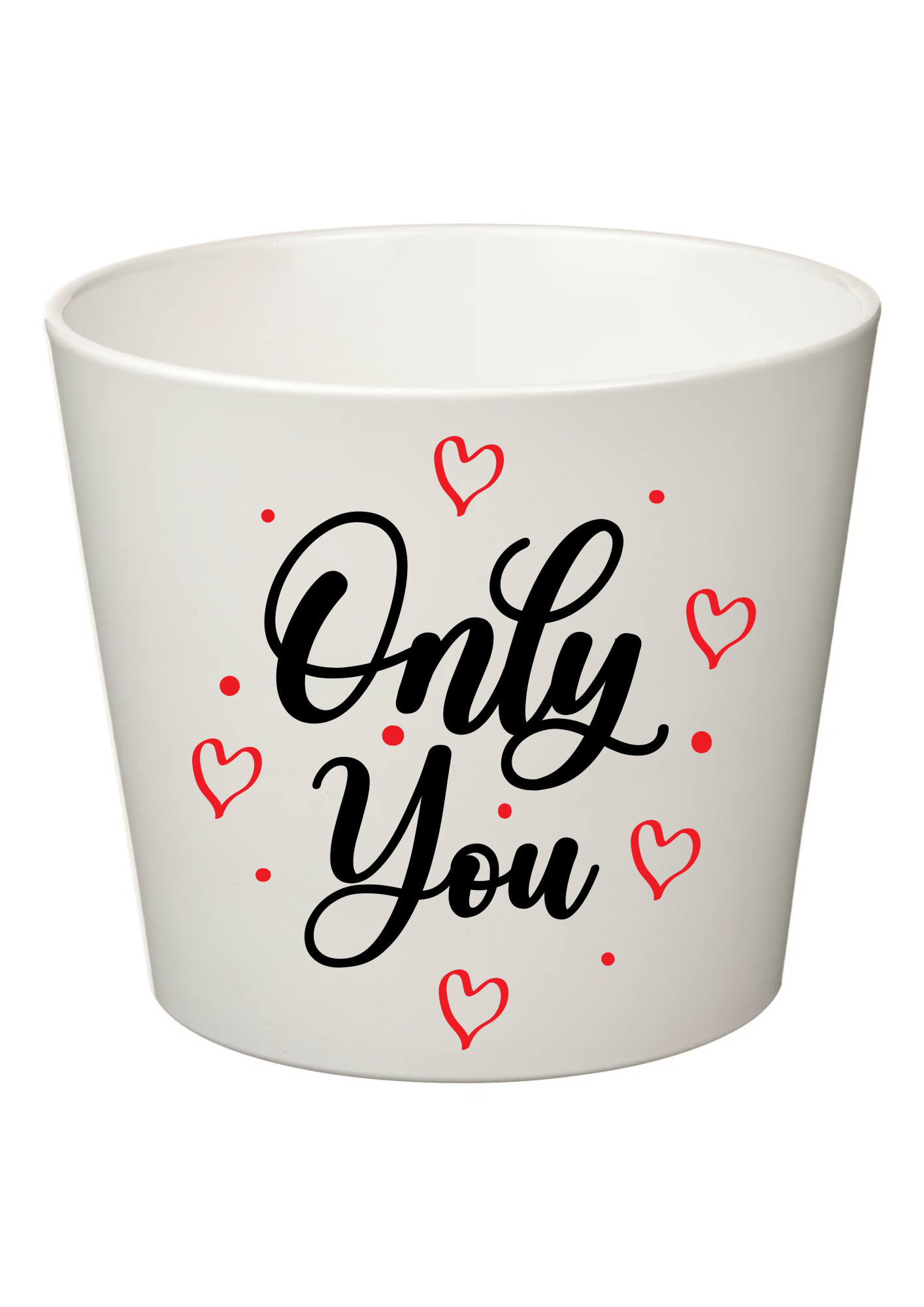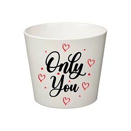 Elegantní bílý květináč s romantickým potiskem "ONLY YOU" je stylovým doplňkem do každého interiéru. Jednoduchý, ale výrazný motiv symbolizuje lásku, harmonii a pozitivní energii, díky čemuž se skvěle hodí nejen jako dekorace, ale i jako milý dárek pro někoho blízkého.
