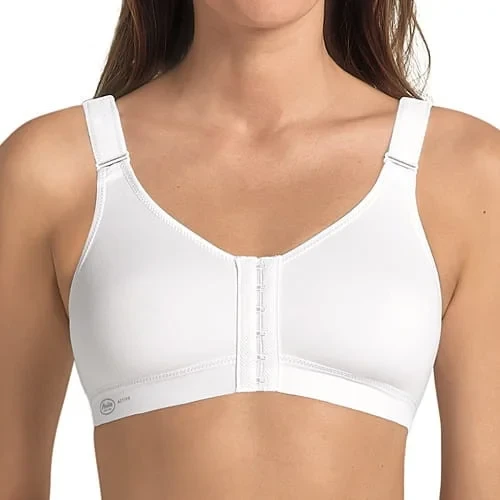 Profesionální sportovní podprsenka Anita. Zapíná se vpředu na háčky. Bezešvé košíčky dokonale podrží i větší prsa, neomezují v pohybu. Sportovní podprsenka Anita frontline poskytuje pevnou oporu poprsí při sportech vyžadujících středně intenzivní pohyb.