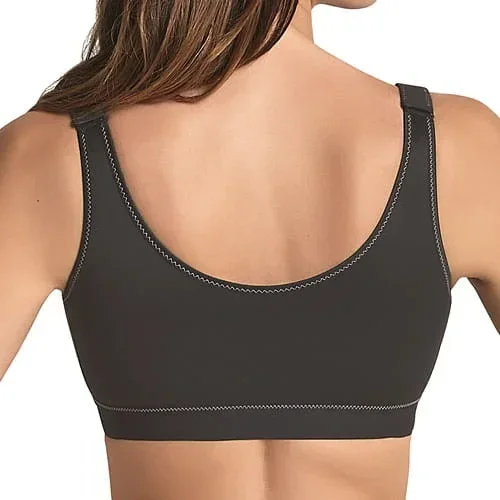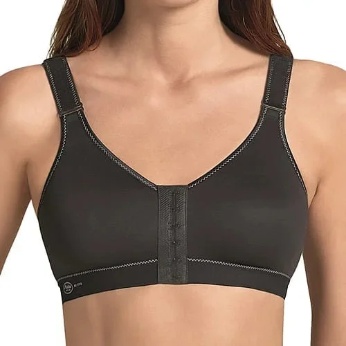 Profesionální sportovní podprsenka Anita. Zapíná se vpředu na háčky. Bezešvé košíčky dokonale podrží i větší prsa, neomezují v pohybu. Sportovní podprsenka Anita frontline poskytuje pevnou oporu poprsí při sportech vyžadujících středně intenzivní pohyb.