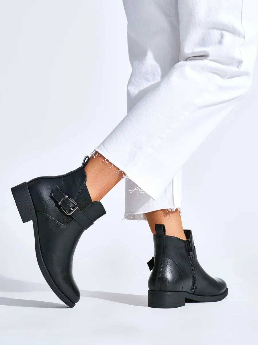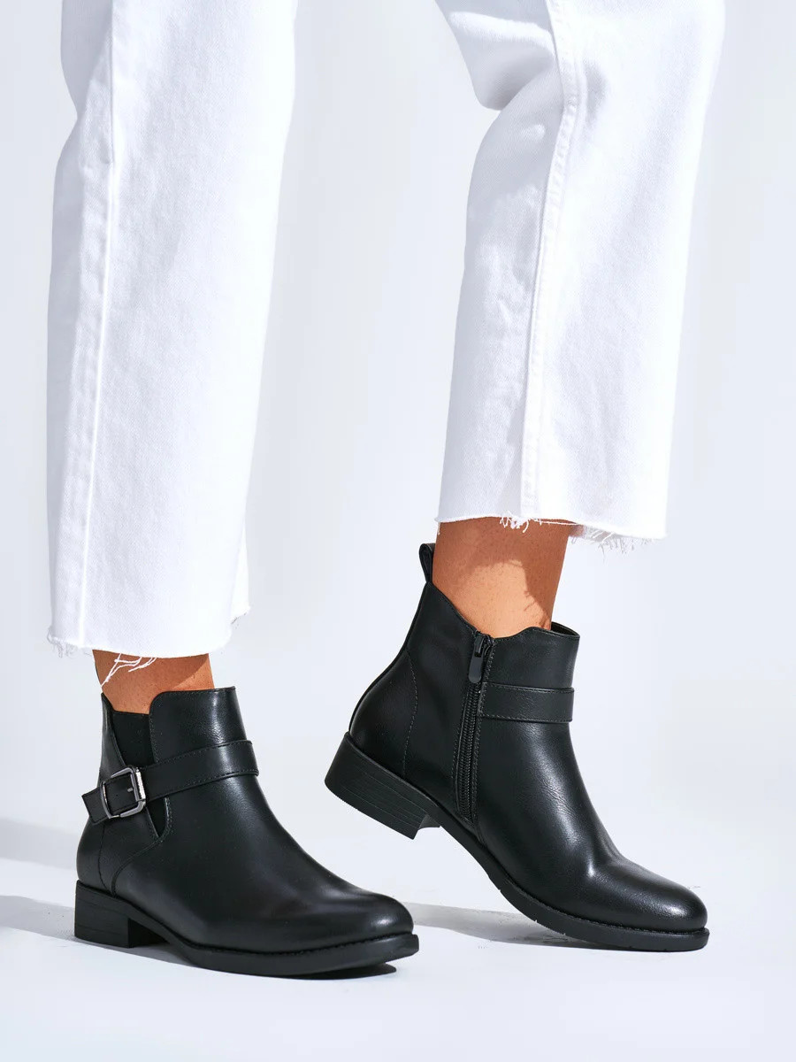 Přidání recenze k Originální černé dámské kotníčkové boty na plochém podpatku