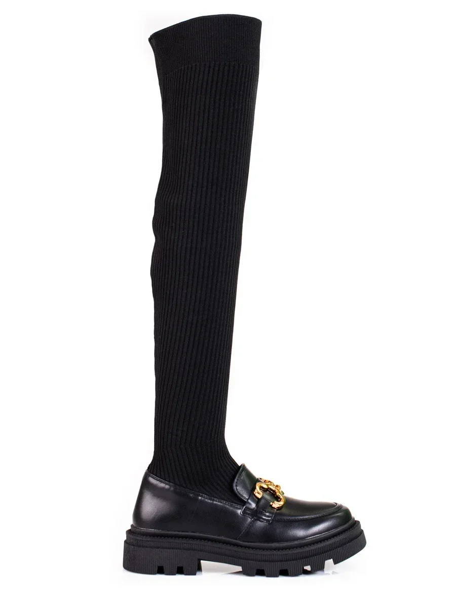Přidání recenze k Originální černé dámské kozačky na plochém podpatku