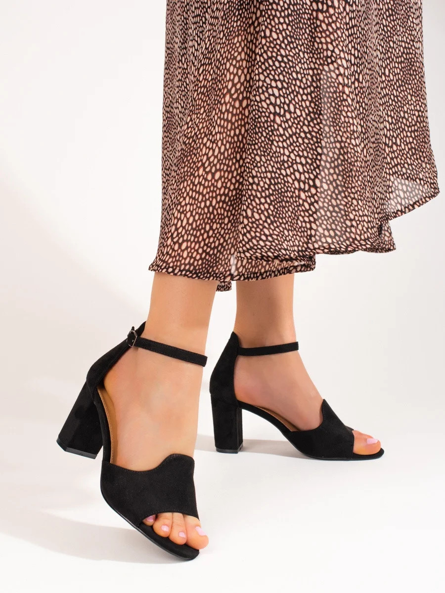 Přidání recenze k Originální černé sandály dámské na širokém podpatku