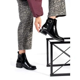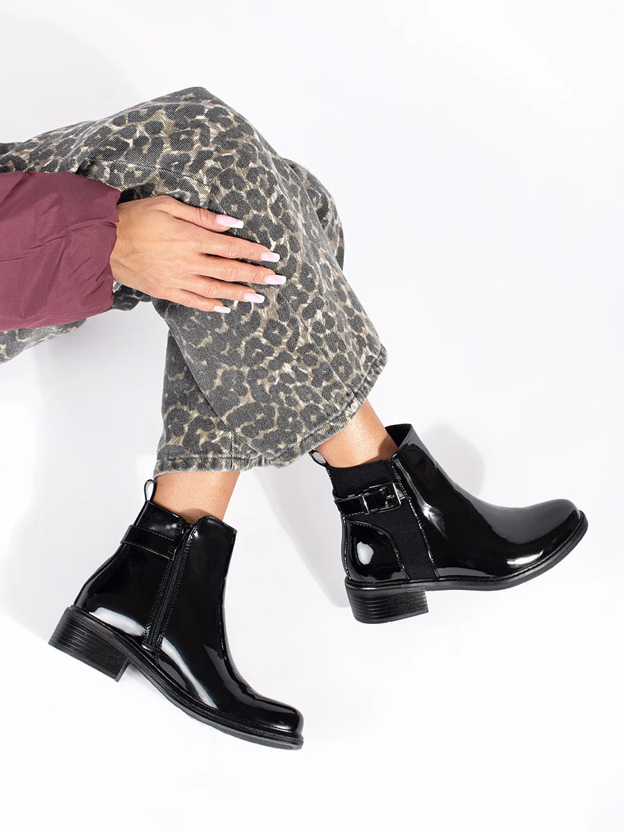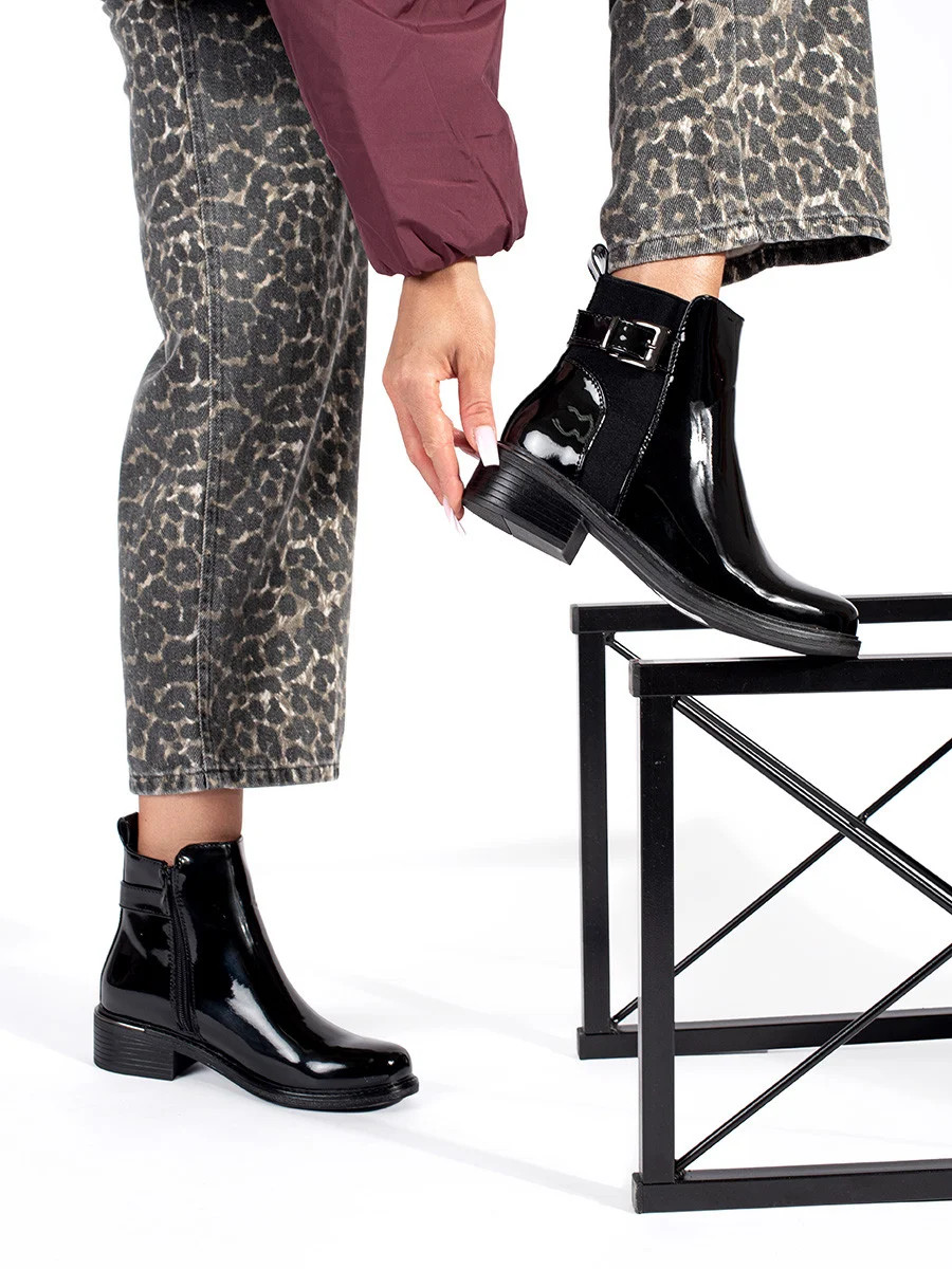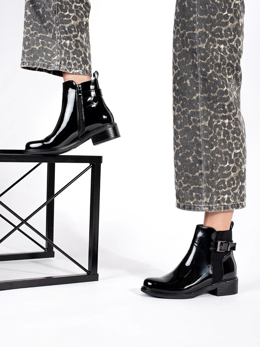 Originální dámské černé kotníčkové boty na širokém podpatku