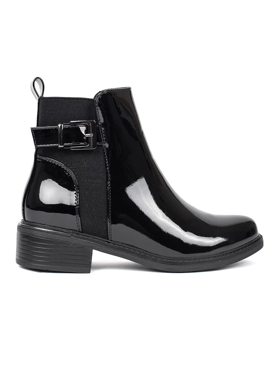 Přidání recenze k Originální dámské černé kotníčkové boty na širokém podpatku