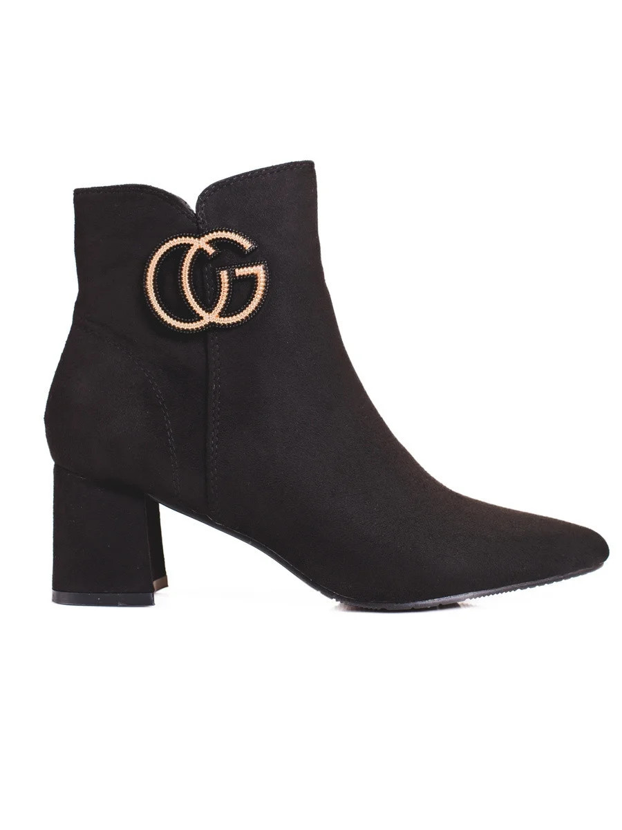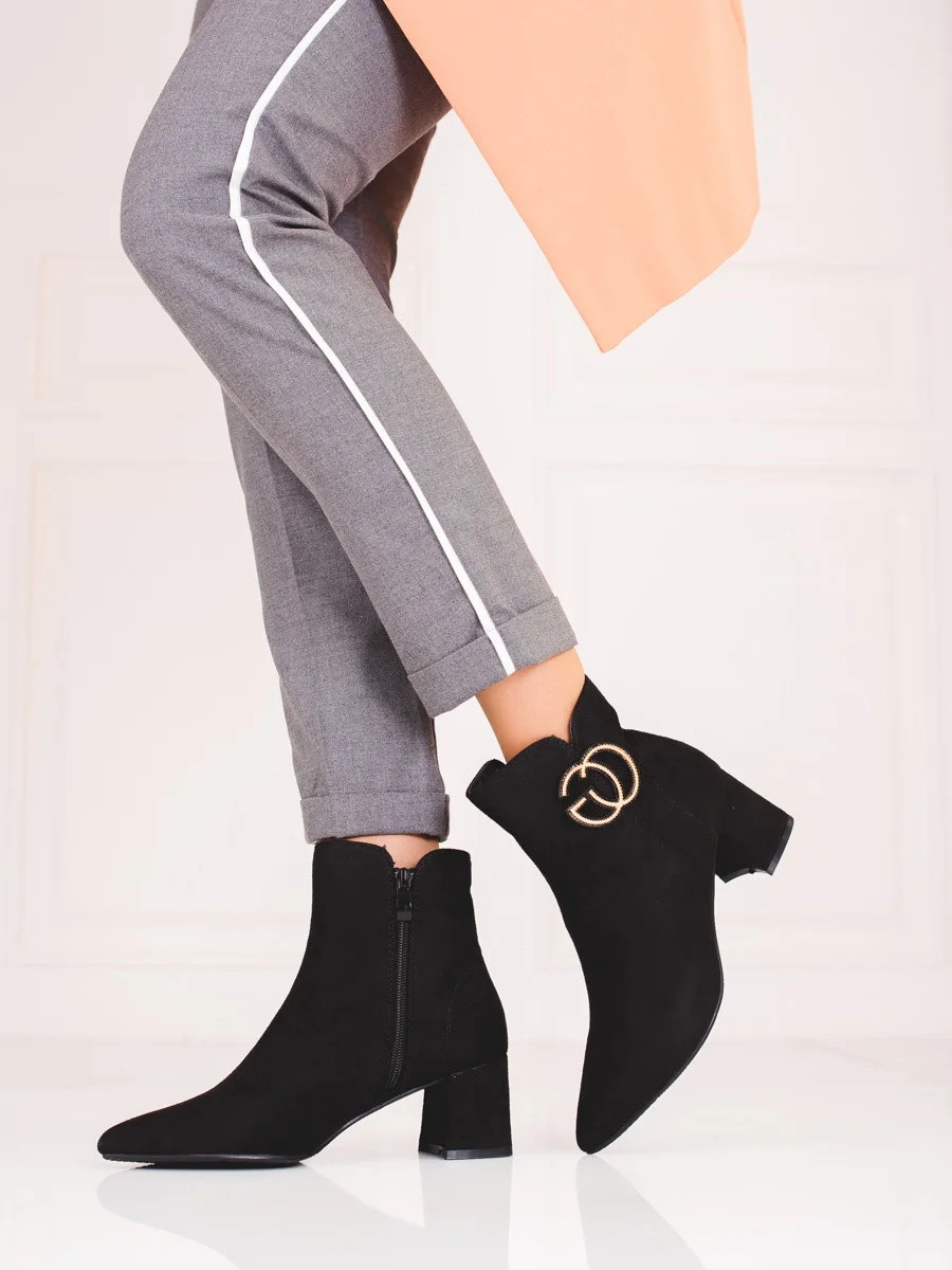 Přidání recenze k Originální dámské černé kotníčkové boty na širokém podpatku