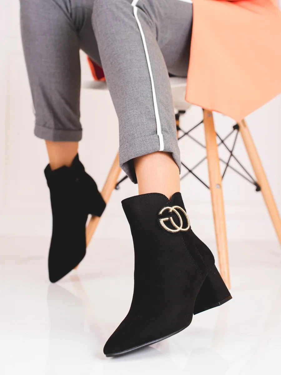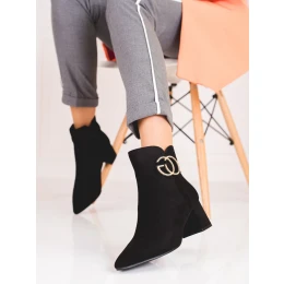 Originální dámské černé kotníčkové boty na širokém podpatku