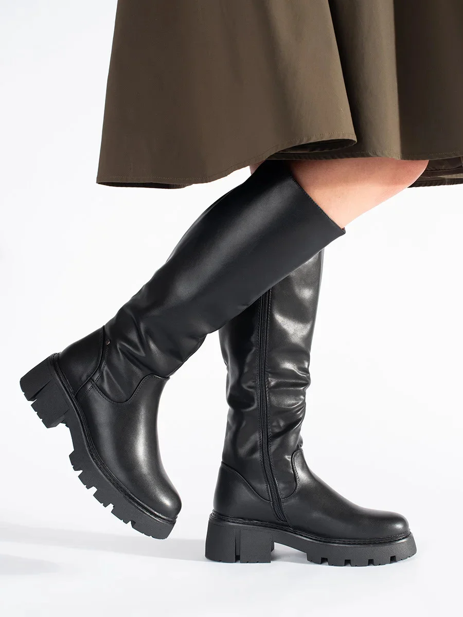 Přidání recenze k Originální dámské kozačky černé na širokém podpatku