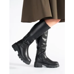 Přidání recenze k Originální dámské kozačky černé na širokém podpatku
