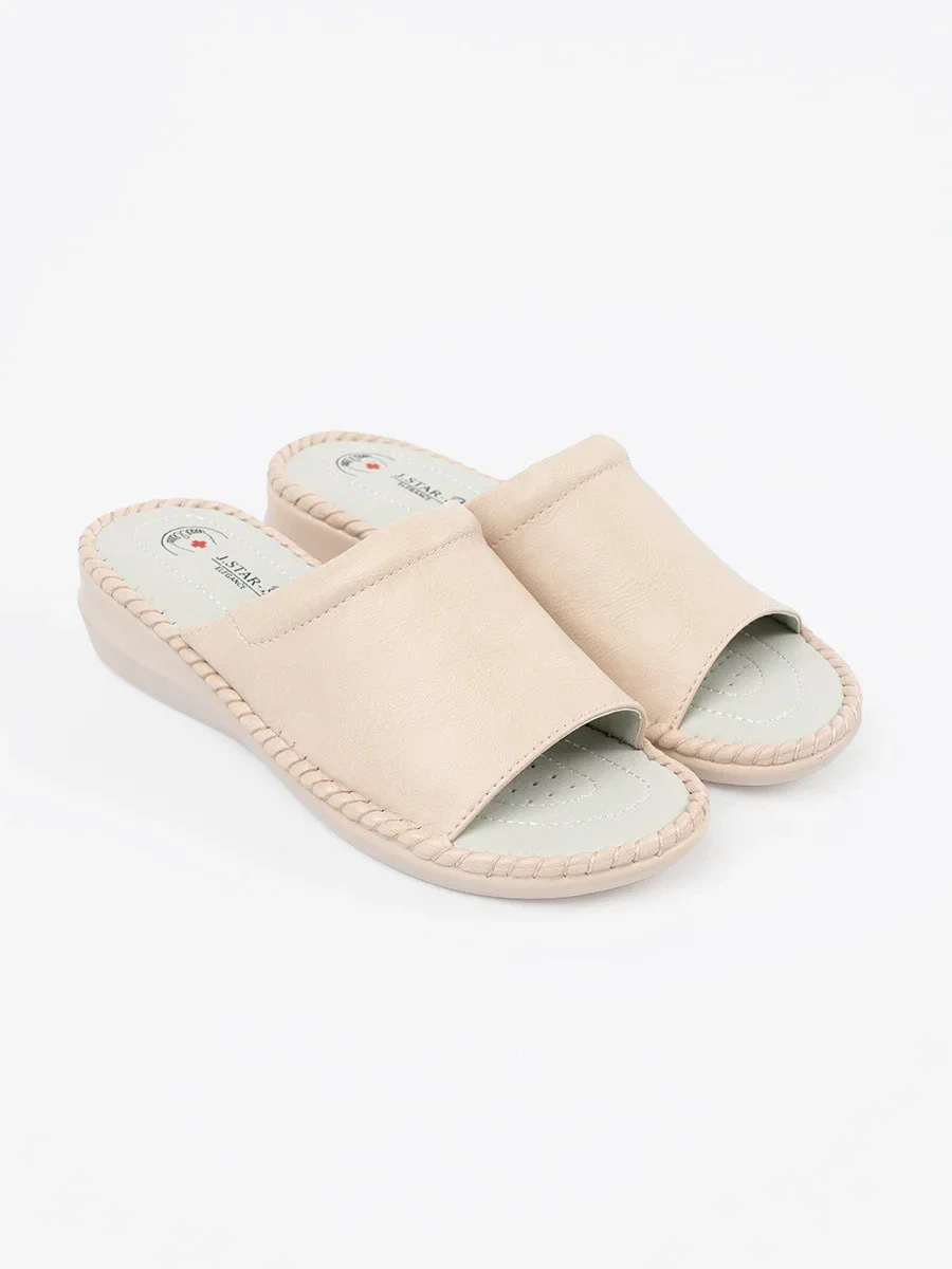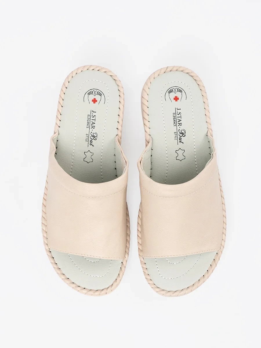 Přidání recenze k Originální Jasnobeżowy nazouváky dámské na plochém podpatku