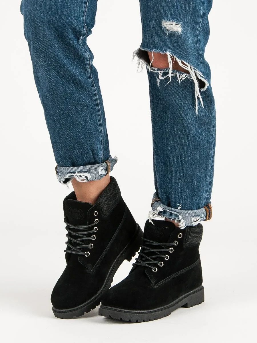 Originální kotníčkové boty dámské černé na plochém podpatku
