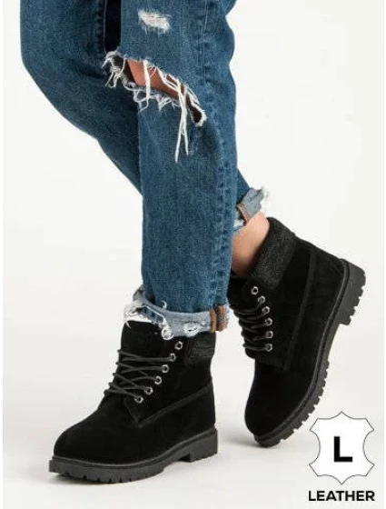 Originální kotníčkové boty dámské černé na plochém podpatku