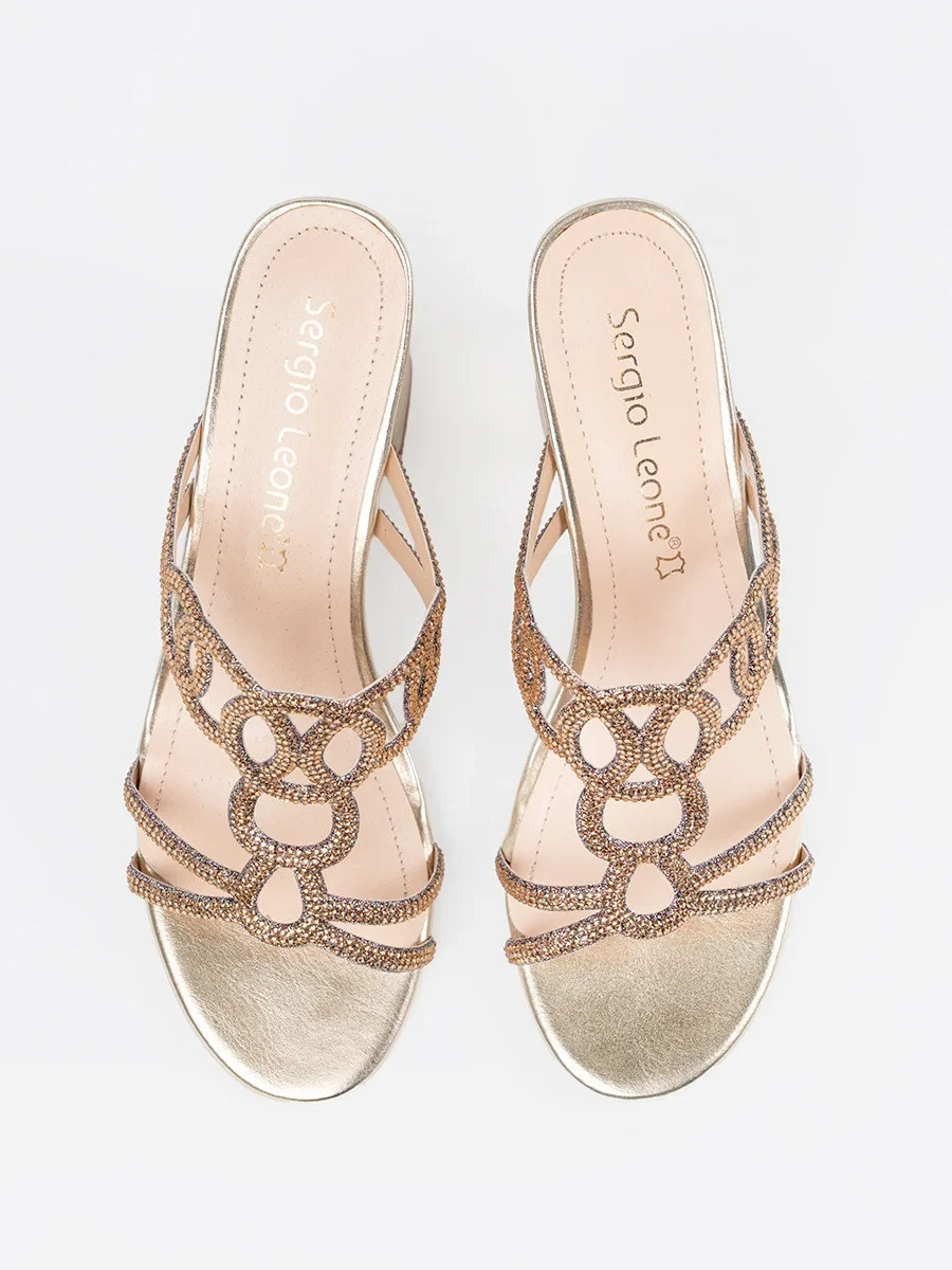 Přidání recenze k Originální nazouváky zlaté dámské na širokém podpatku