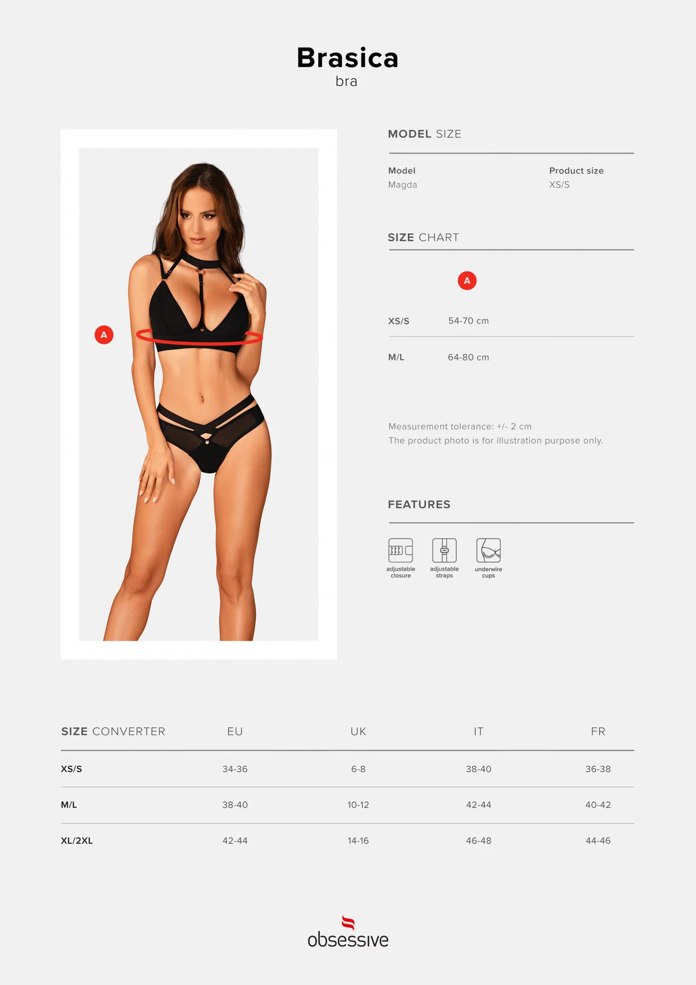 Produkt Originální podprsenka Brasica bra - Obsessive prodáváme v těchto velikostech: M/L, XS/Sa barvách černá5901688250433, 5901688250419