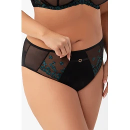 Tył z tiulu elastycznego wykończony na gładko, tak aby majtki nie odznaczały się pod ubraniem