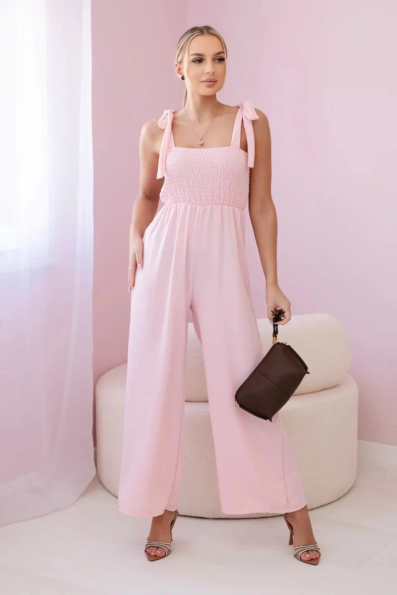 Overal na ramínka s volánkovým topem pudrově růžová