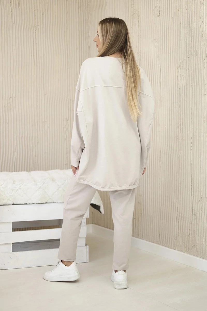 Oversize bavlněný komplet teplákové + kalhoty béžový