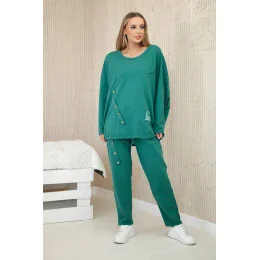 Oversize bavlněný komplet teplákové + kalhoty zelený