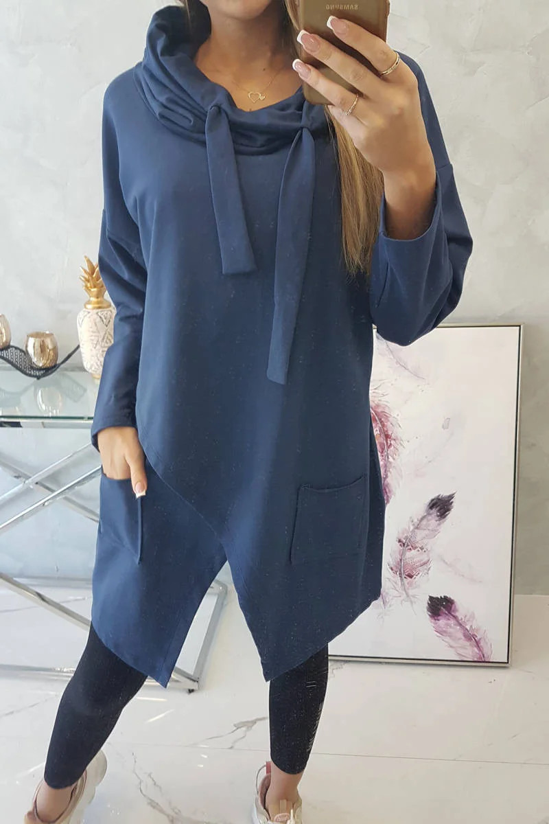 Představujeme vám módní tuniku. Tunika má zahalující přední díl. Tunika má navíc kapsy a široký límec. Tato tunika se vyznačuje módním designem a precizním zpracováním. Ve vašem šatníku rozhodně nesmí chybět.Tunika je vyrobena z vysoce kvalitního materiálu. Univerzální velikost je vhodná pro dámy, které nosí každodenní oblečení ve velikostech L, XL, 2XL.