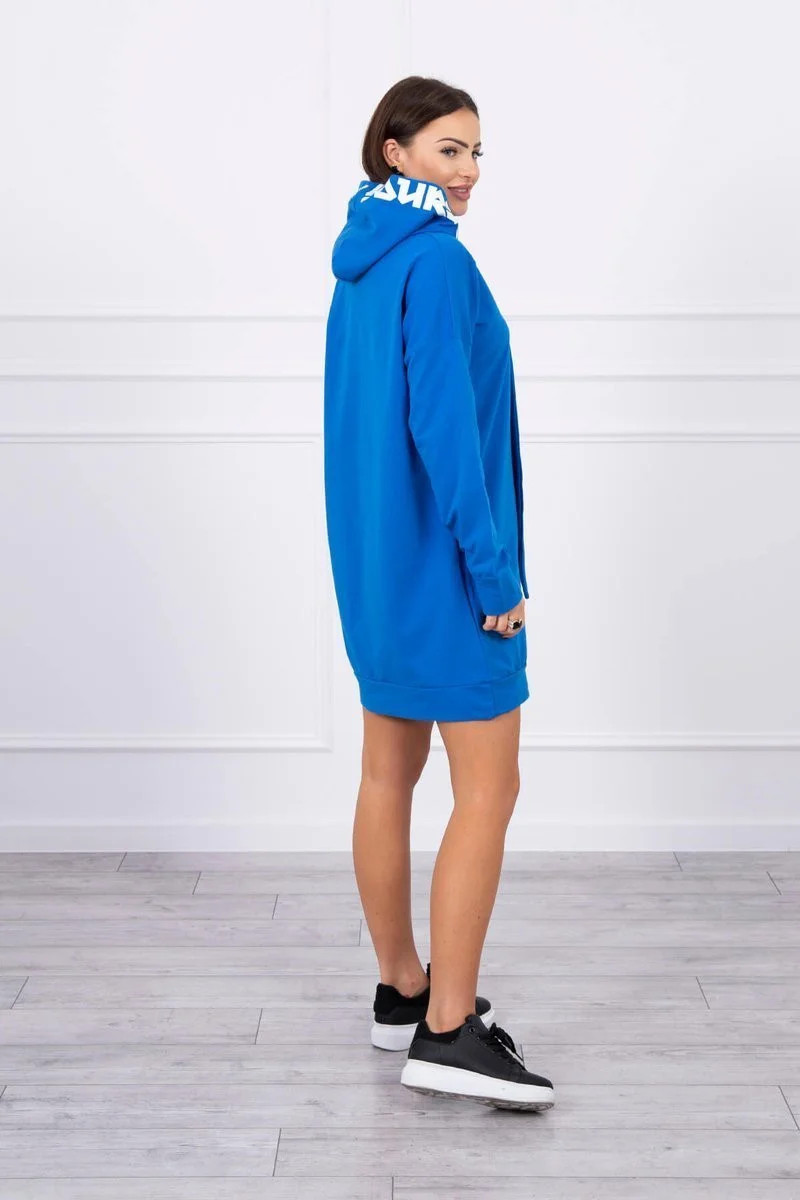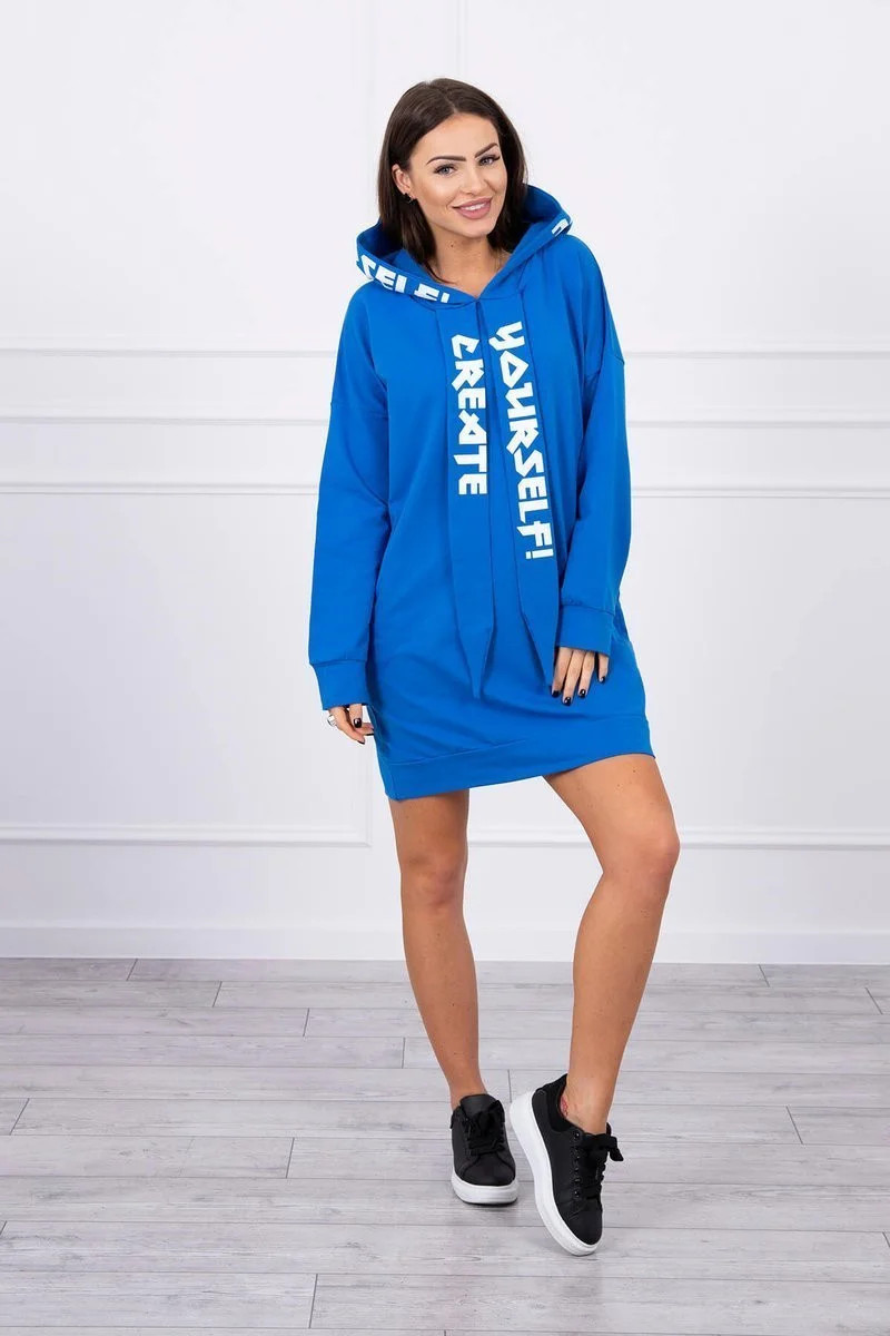 Prezentujemy Państwu modną sukienkę. Sukienka posiada kaptur. Sukienka posiada nadruk na kapturze oraz na szarfach z przodu. Idealna pozycja na co dzień. Sukienka wykonana jest z wysokiej jakości materiału. Rozmiar jest uniwersalny i będzie odpowiedni dla Pań noszących rozmiar M, L lub XL