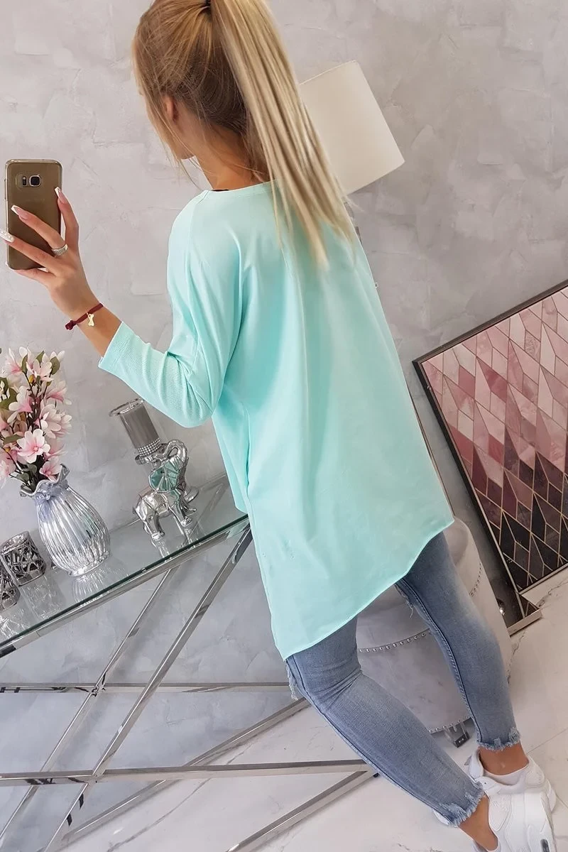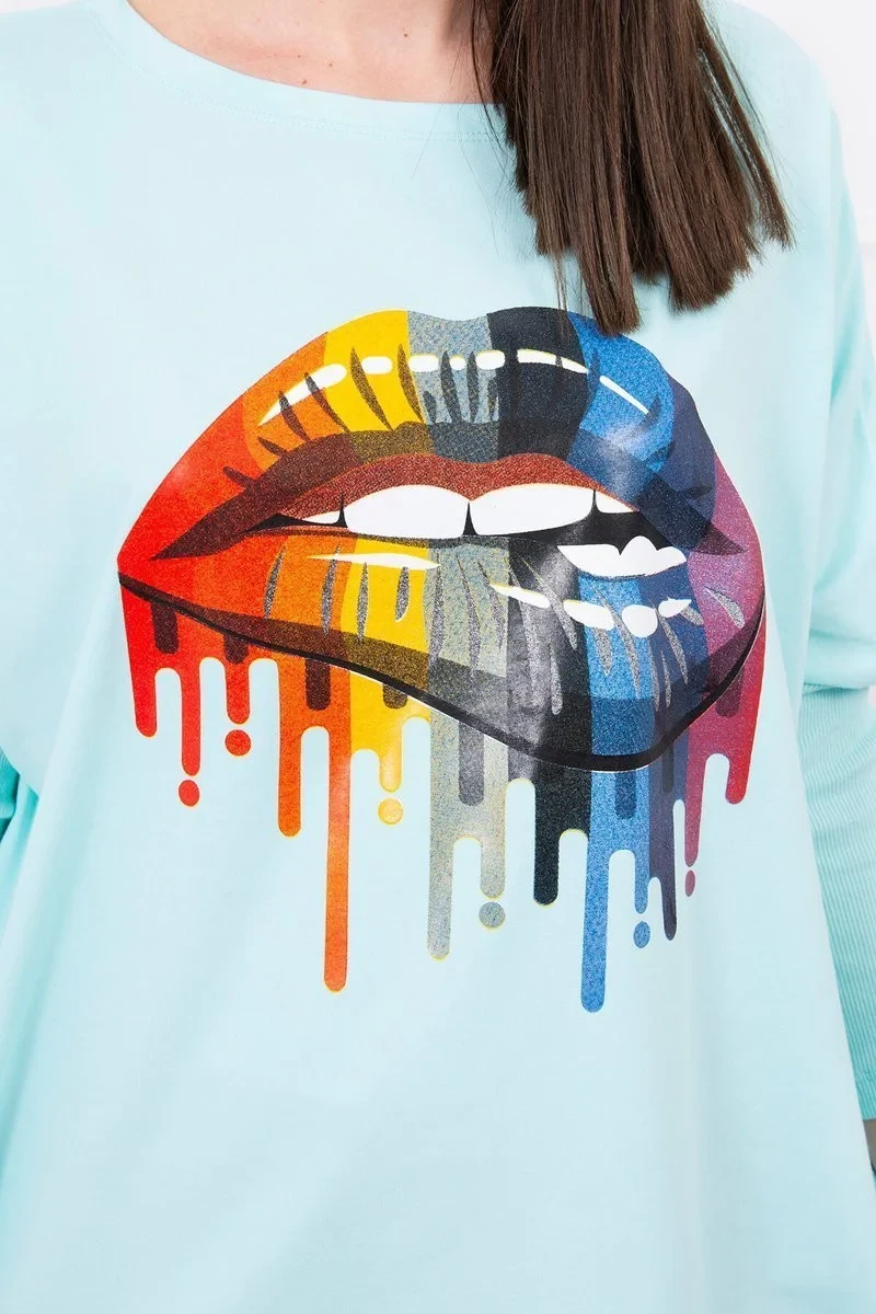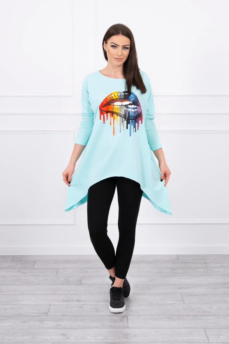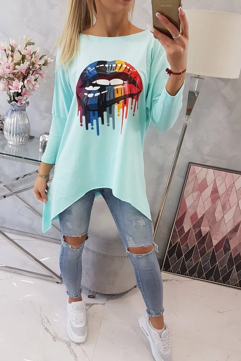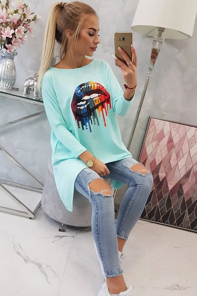 Oversize halenka s model 18744319 potiskem rtů v barvě mint - K-Fashion