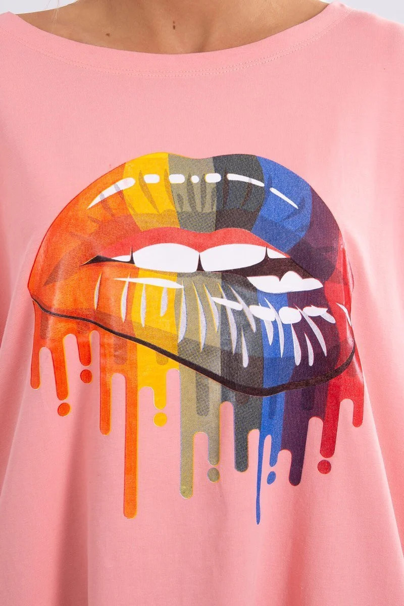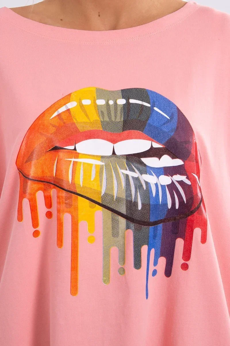 Představujeme vám super oversize halenku. Halenka má na přední straně potisk zobrazující rty v barvách duhy. Halenka s kapsami. Tato halenka se vyznačuje módním designem a precizním zpracováním. Ve vašem šatníku rozhodně nesmí chybět. Halenka je vyrobena z vysoce kvalitního materiálu. Univerzální velikost je vhodná pro dámy, které nosí každodenní oblečení ve velikostech M, L nebo XL